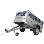 Remorque Garden Trailer 200 Kipp avec roue jockey, rehausses supplémentaire, arceau H-800 et bâche bleue