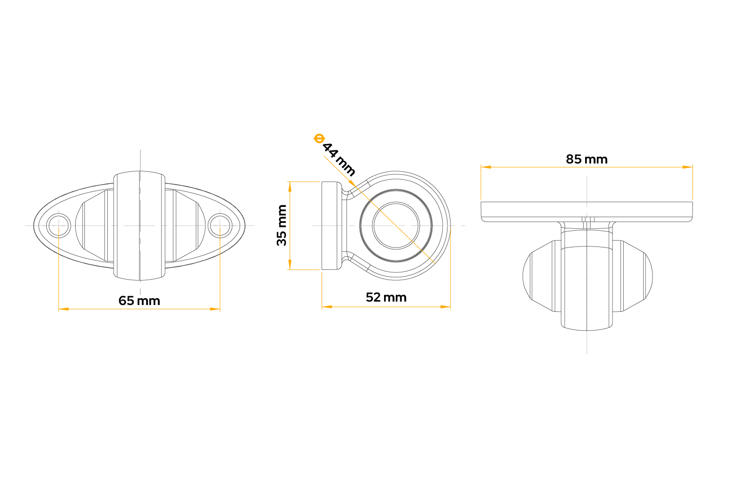 Le feu de gabarit HOR 51 (LD 465 LED) de HORPOL est conçu pour être monté sur le côté gauche et droit du véhicule et a les dimensions suivantes : largeur 86 mm, hauteur 52 mm, profondeur 44 mm. Conçu pour fonctionner dans une plage de tension de 12 à 24 V, il peut être utilisé dans les remorques, les machines agricoles, les camions et les dépanneuses, ce qui souligne son universalité. Equipé d'une base de montage ovale et de deux câbles simples de 0,23 m de long, il permet une installation facile et rapide. Grâce à l'utilisation de la technologie LED la lampe offre des performances élevées, une durabilité et une efficacité énergétique, garantissant la sécurité dans diverses conditions routières.