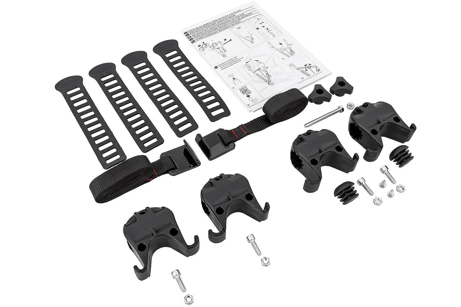 L'ensemble comprend également des sangles pour fixer les vélos.