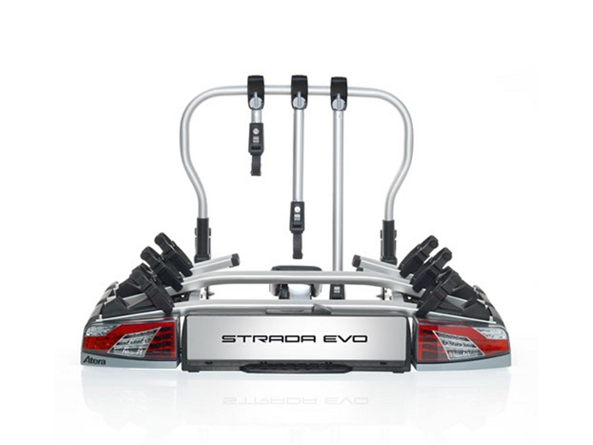 - Atera Strada Evo 3 surprend par son design et sa fonctionnalité exceptionnels. Grâce à son système innovant d'inclinaison et de coulissement, la plateforme est idéale pour les voitures équipées de hayon long et atypique. Elle s'adapte à de nombreux vélos.
