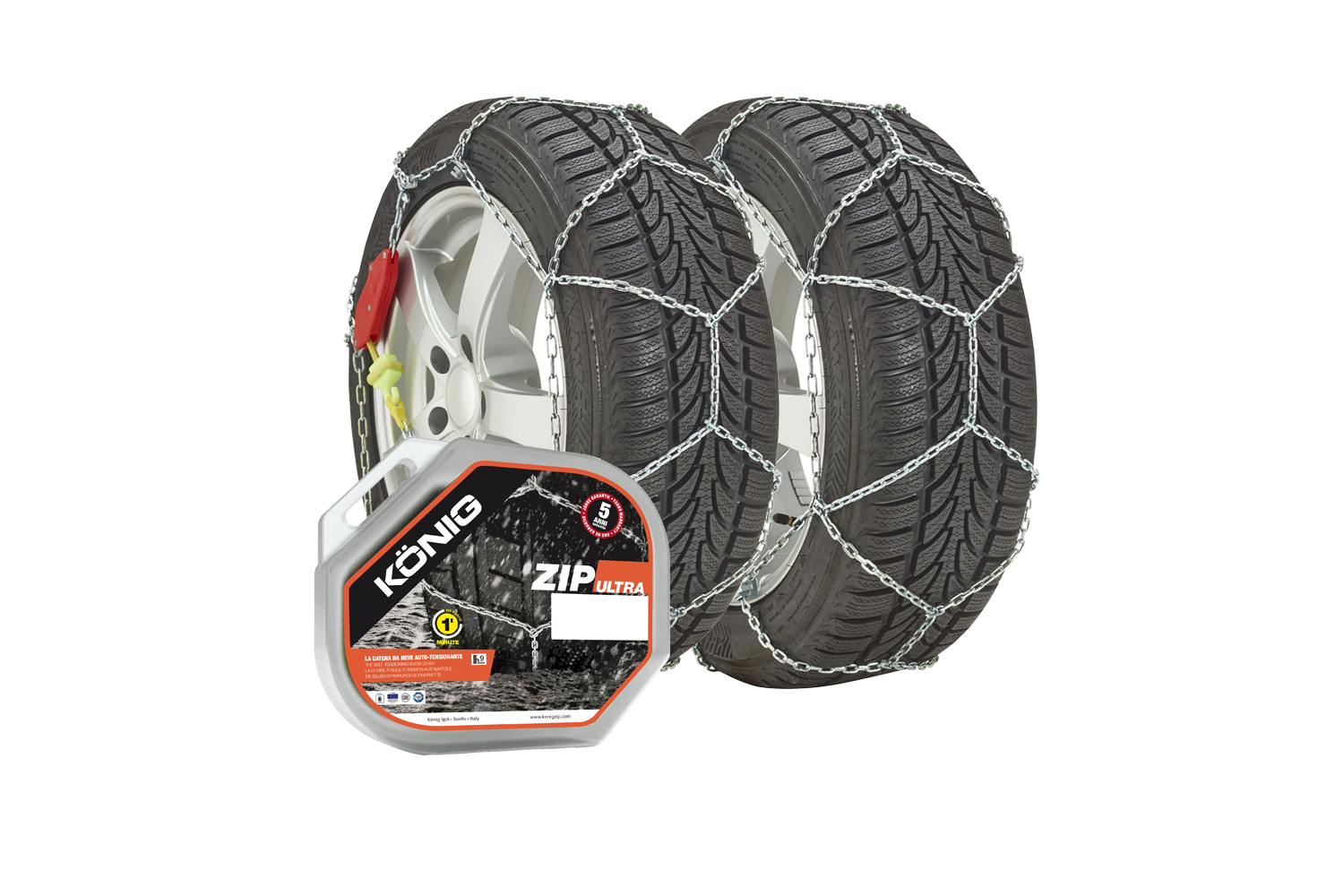 - Konig Zip 9 Ultra – chaînes à neige avec système de tension automatique. Idéales pour les voitures particulières, elles offrent une excellente traction, une installation facile et sont compatibles avec l'ABS et l'ESP. Une solution idéale pour les trajets