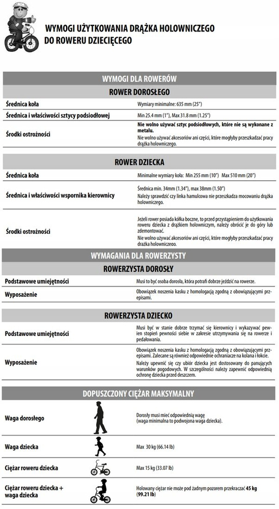 | Poids du vélo de l'enfant + poids de l'enfant | ![]() | Le poids remorqué ne doit en aucun cas dépasser 45 kg (99,21 lb) . |