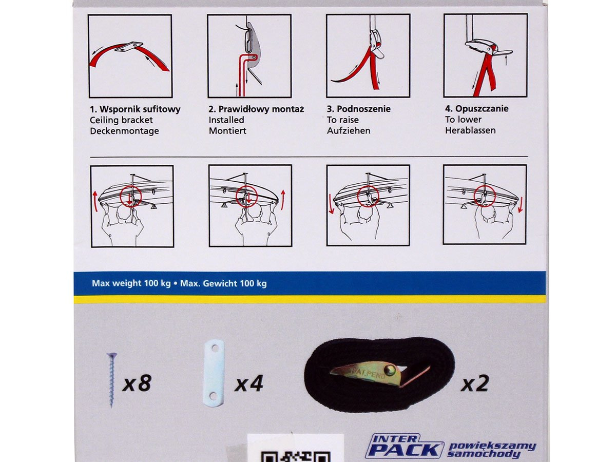 - Le support de plafond Inter Pack pour coffre de toit est la solution parfaite pour les personnes qui souhaitent utiliser pleinement l'espace sous le plafond de leur garage, buanderie ou sous-sol.
