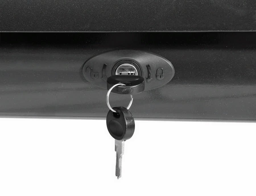 L'ouverture bidirectionnelle simplifie considérablement l'utilisation du coffre : il peut être déballé côté conducteur ou côté passager. Des vérins à ressort soutiennent le couvercle à l'ouverture et le ferment hermétiquement une fois fermé. La serrure centralisée trois points verrouille l'ensemble du coffre d'un seul geste, et la clé ne peut être retirée qu'après sa fermeture, renforçant ainsi la sécurité de vos biens.