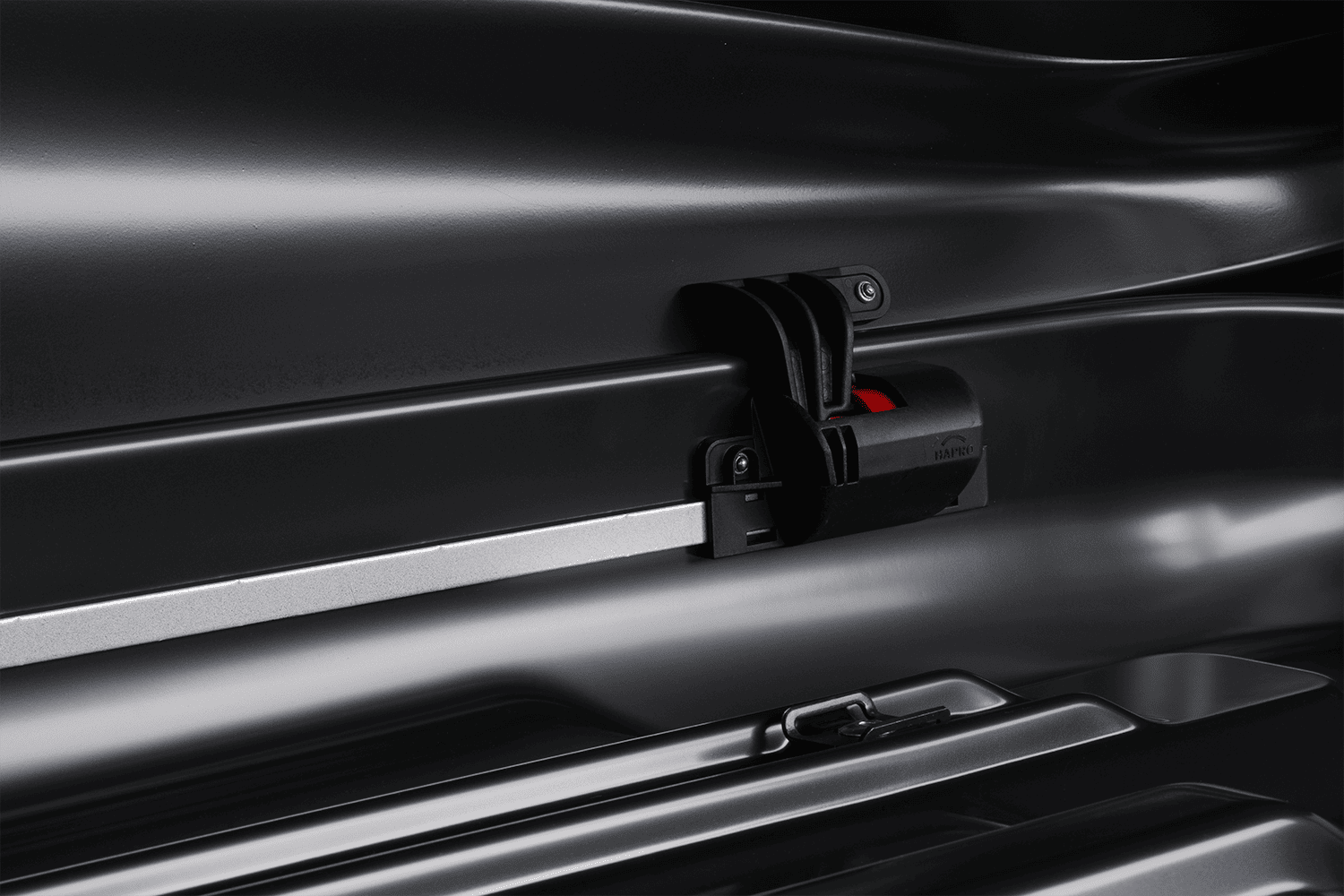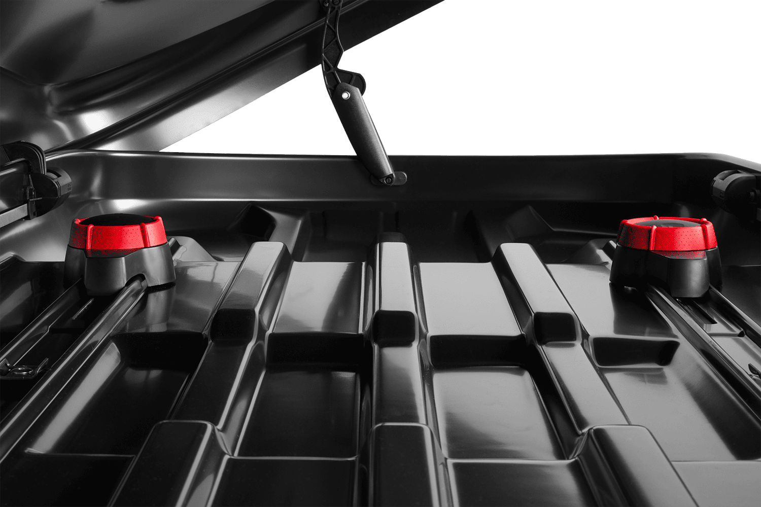 Le Traxer 8.6 a été conçu pour optimiser l'espace de chargement tout en conservant une forme profilée qui réduit la résistance à l'air et le bruit pendant la conduite. Le plastique ABS robuste, résistant aux UV et aux intempéries, garantit la fiabilité du coffre pendant de nombreuses saisons. La base, renforcée par des bandes métalliques, renforce encore sa rigidité et sa stabilité, améliorant ainsi la sécurité de votre chargement.