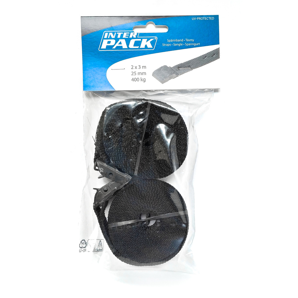 - Sangles textiles de 300 cm de long avec mécanisme de verrouillage. Fabriquées dans un matériau robuste, elles permettent d'attacher des bagages à un coffre de toit, des roues de vélo à un porte-vélos et de nombreuses autres utilisations à la maison ou à l