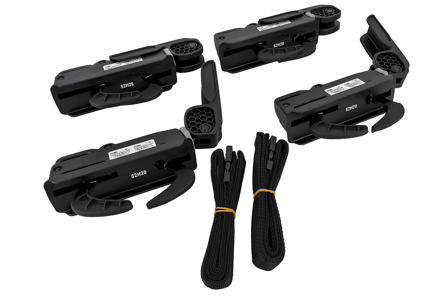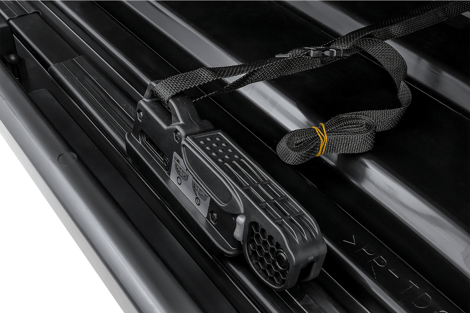 L'ensemble comprend des sangles textiles qui peuvent être montées dans des supports dédiés à l'intérieur de la boîte pour sécuriser solidement les bagages pendant le transport.