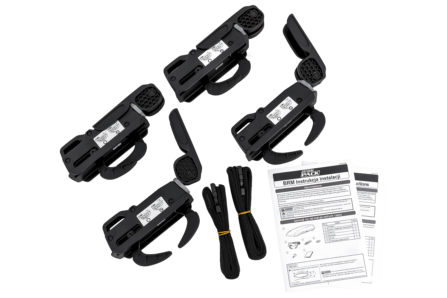 L'ensemble comprend des sangles textiles qui peuvent être montées à des points dédiés, assurant un transport sûr des bagages et la stabilité de l'ensemble de la structure.