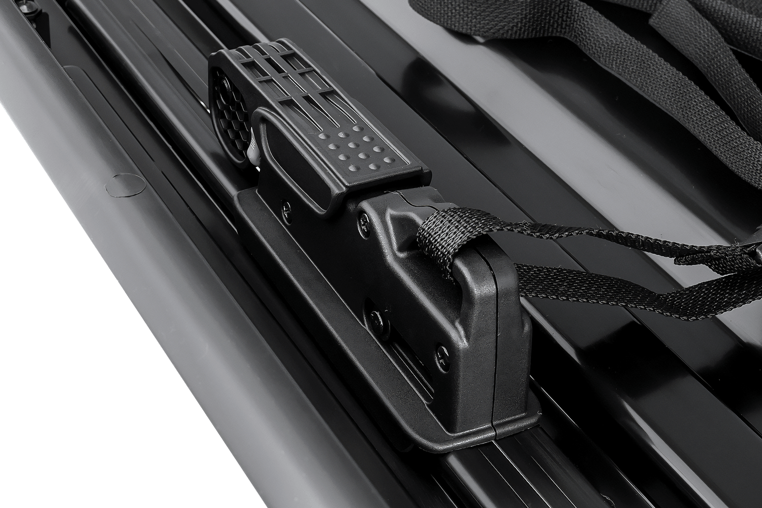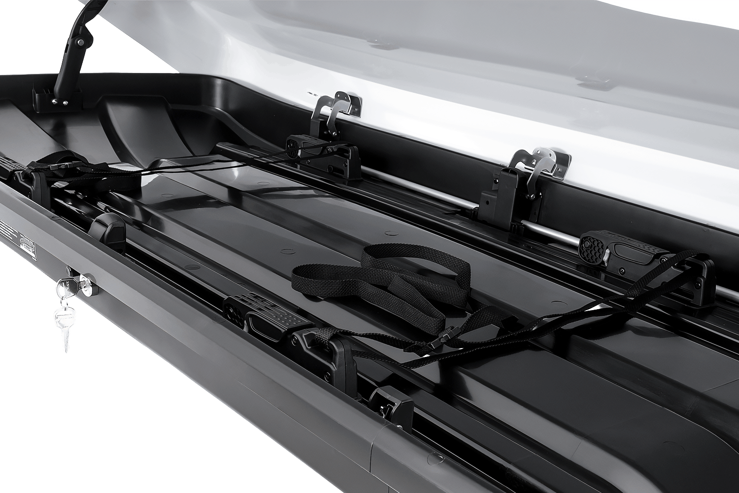 Avec des dimensions intérieures de 183 x 21 x 65 cm, le coffre reste spacieux et pratique malgré son profil bas. Ses lignes aérodynamiques et sa finition brillante s'harmonisent parfaitement avec la silhouette des voitures modernes.