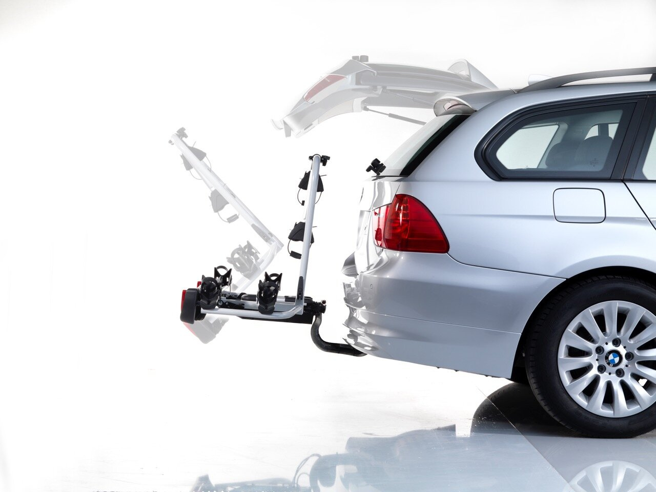 La fonction d'inclinaison de la plateforme permet un accès complet au coffre de la voiture sans avoir à retirer les vélos. Ce mécanisme convivial s'actionne au pied et permet de soutenir les vélos inclinés des deux mains. Le vélo électrique Atera Strada XL est équipé de verrous pour fixer le porte-vélos à la boule d'attelage et aux vélos dans le coffre. Des supports de roues mobiles permettent un ajustement parfait aux vélos transportés.