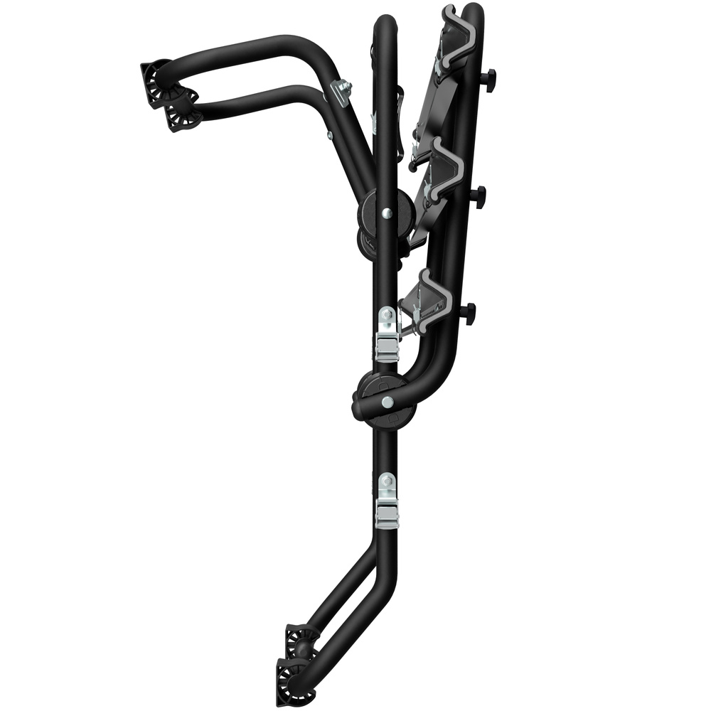 - Porte-vélos universel en acier pour hayon, pouvant accueillir jusqu'à 3 vélos. Compatible avec toutes les morphologies. Installation simple et pratique grâce à 6 sangles de fixation.