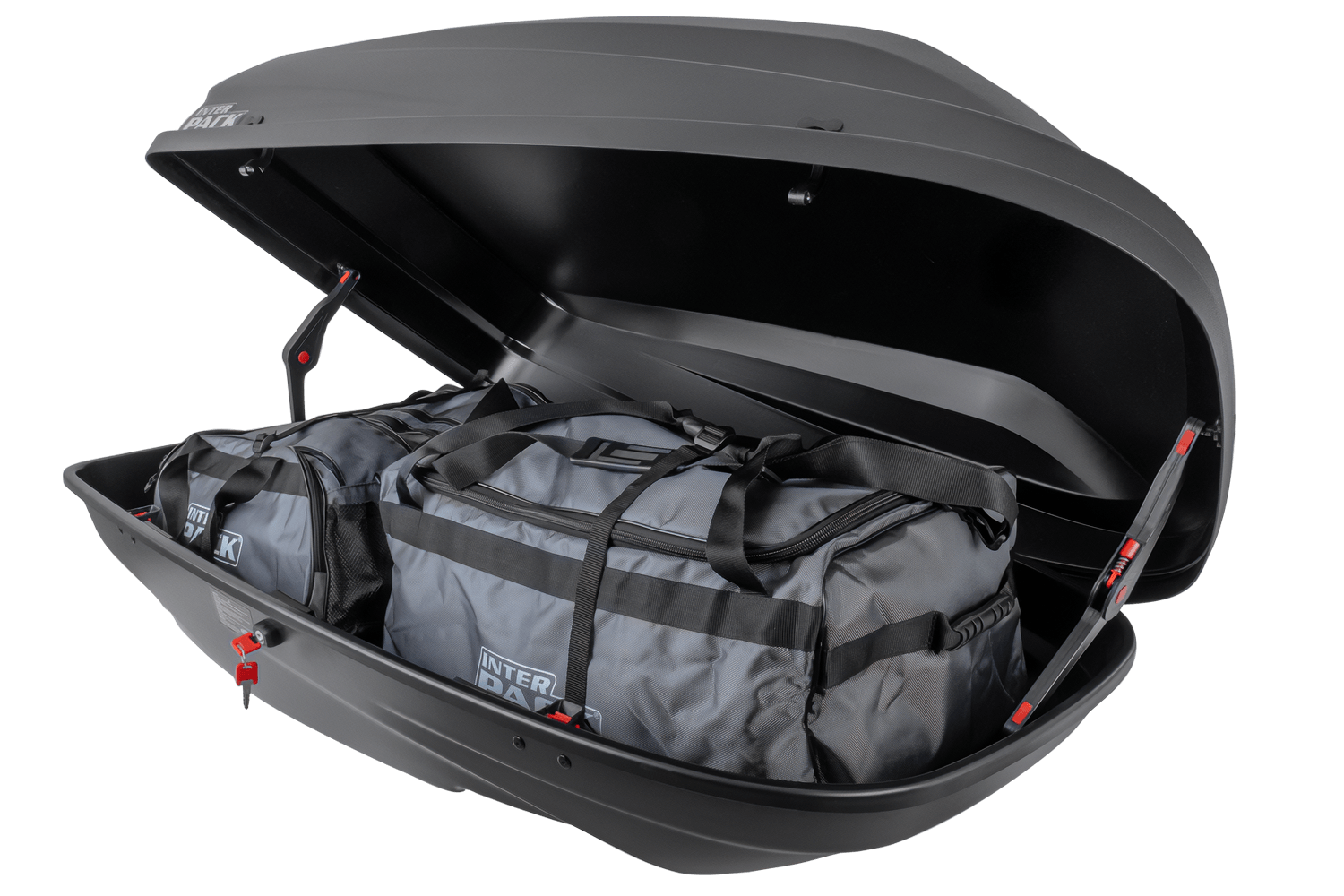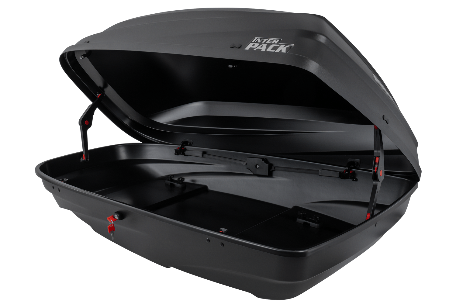 - Inter Pack Stella 440 (noir mat) Capacité 360 l, longueur 146 cm, charge 75 kg, poids 10,4 kg. Ouverture bidirectionnelle, vérins à ressort et verrouillage centralisé pour plus de confort et de sécurité. Installation avec colliers en U ou Flexi Fit.