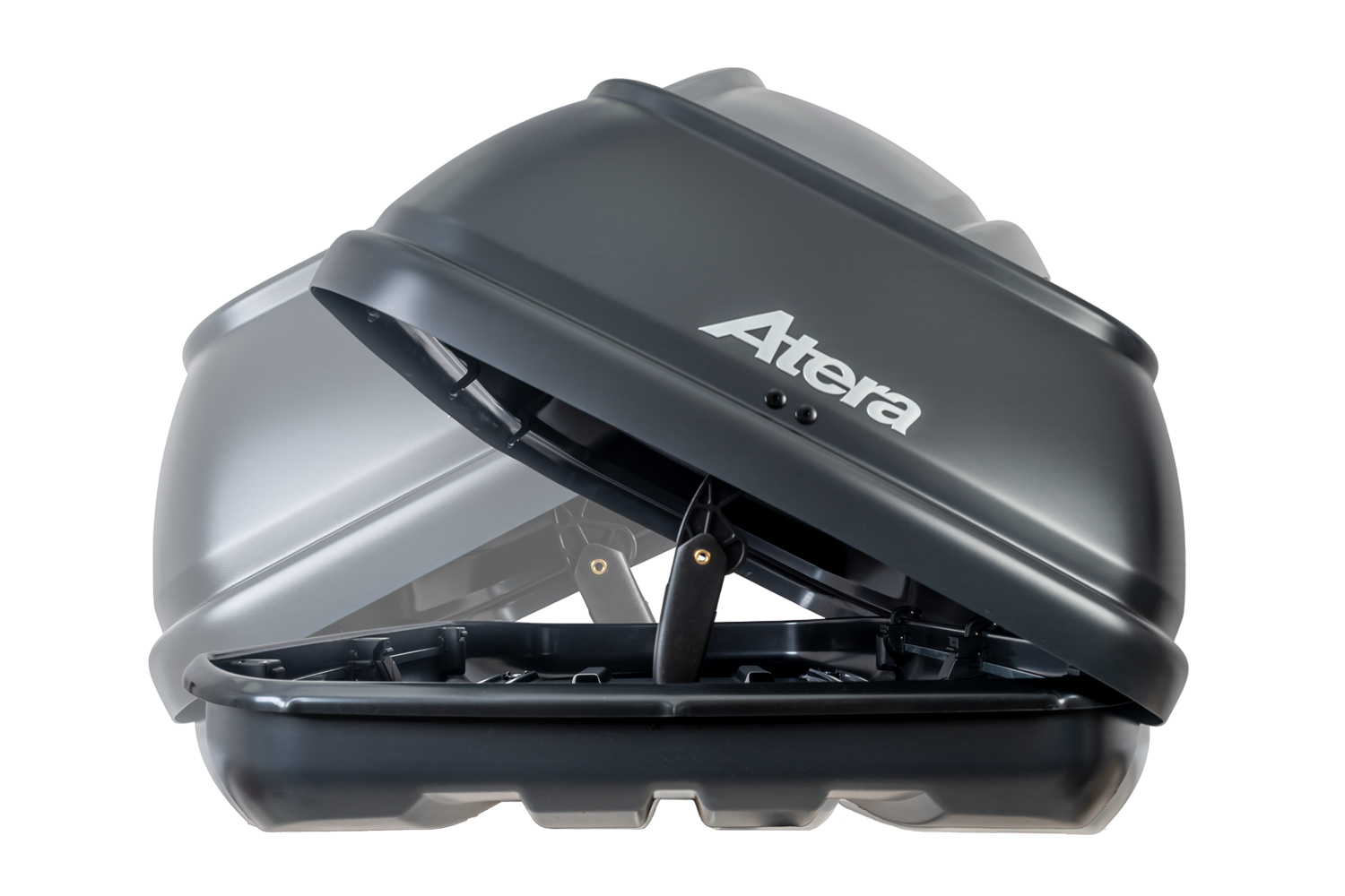 L'Atera Casar XL est un coffre de toit moderne, idéal pour les longues vacances et les déplacements quotidiens nécessitant un espace supplémentaire. Avec une capacité de 530 litres et une longueur de 215 cm, il peut facilement accueillir valises, sacs, poussette et équipements de sport, y compris skis et snowboards jusqu'à 210 cm de long.