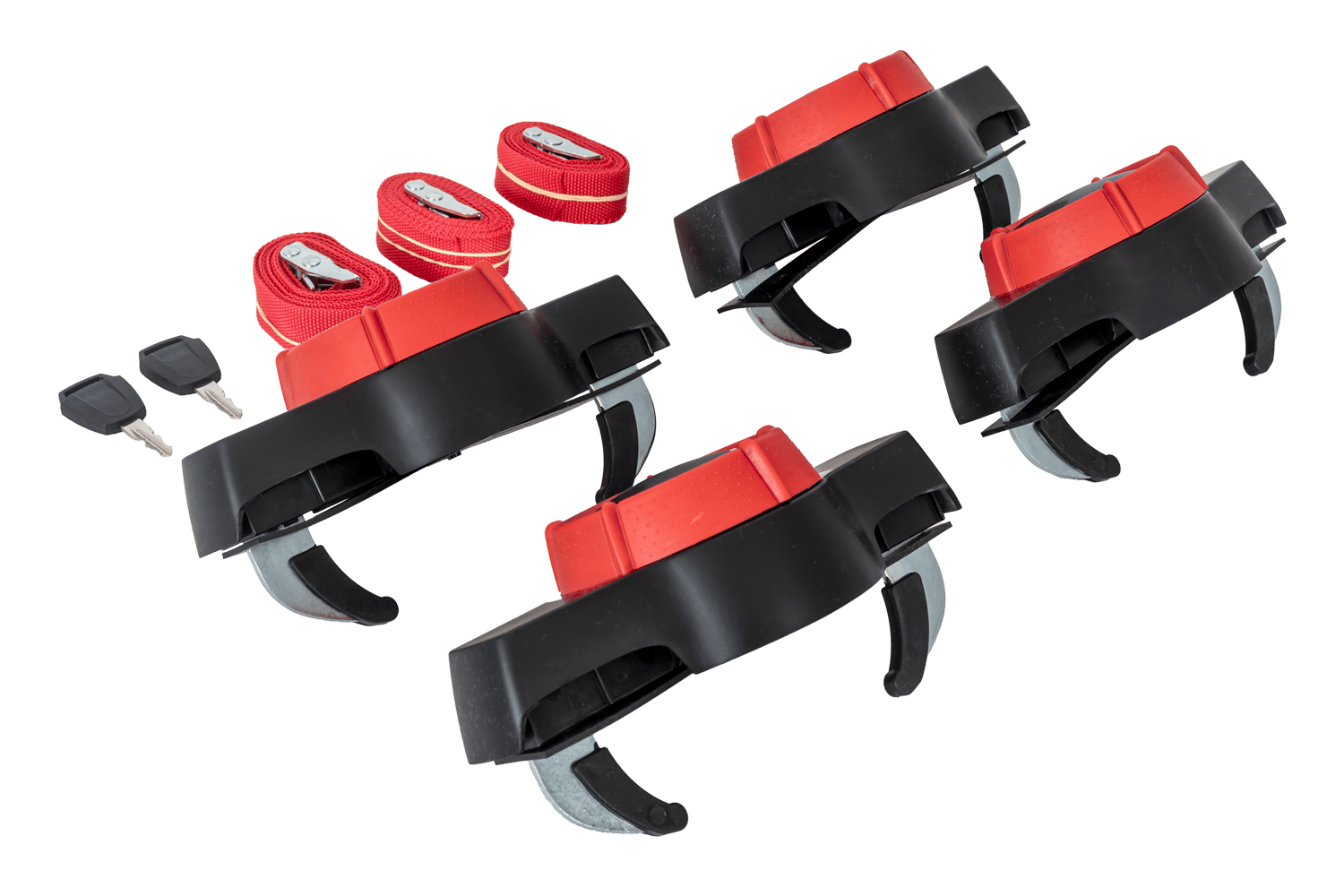 L'ensemble comprend également des sangles textiles qui permettent une fixation solide des bagages transportés.