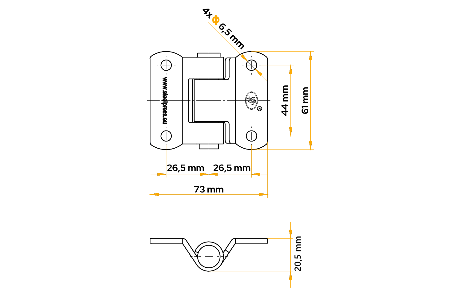 La charnière latérale ZW-02.40 de STEELPRESS est un composant robuste et durable conçu pour le montage des panneaux latéraux des remorques cargo, agricoles et utilitaires. Mesurant 73 mm de long et 61 mm de large, elle est polyvalente et s'adapte facilement à différents types de remorques. Sa fabrication soignée garantit un fonctionnement stable et simplifie l'ouverture et la fermeture des panneaux latéraux, améliorant ainsi la fonctionnalité de l'ensemble de la structure de la remorque.