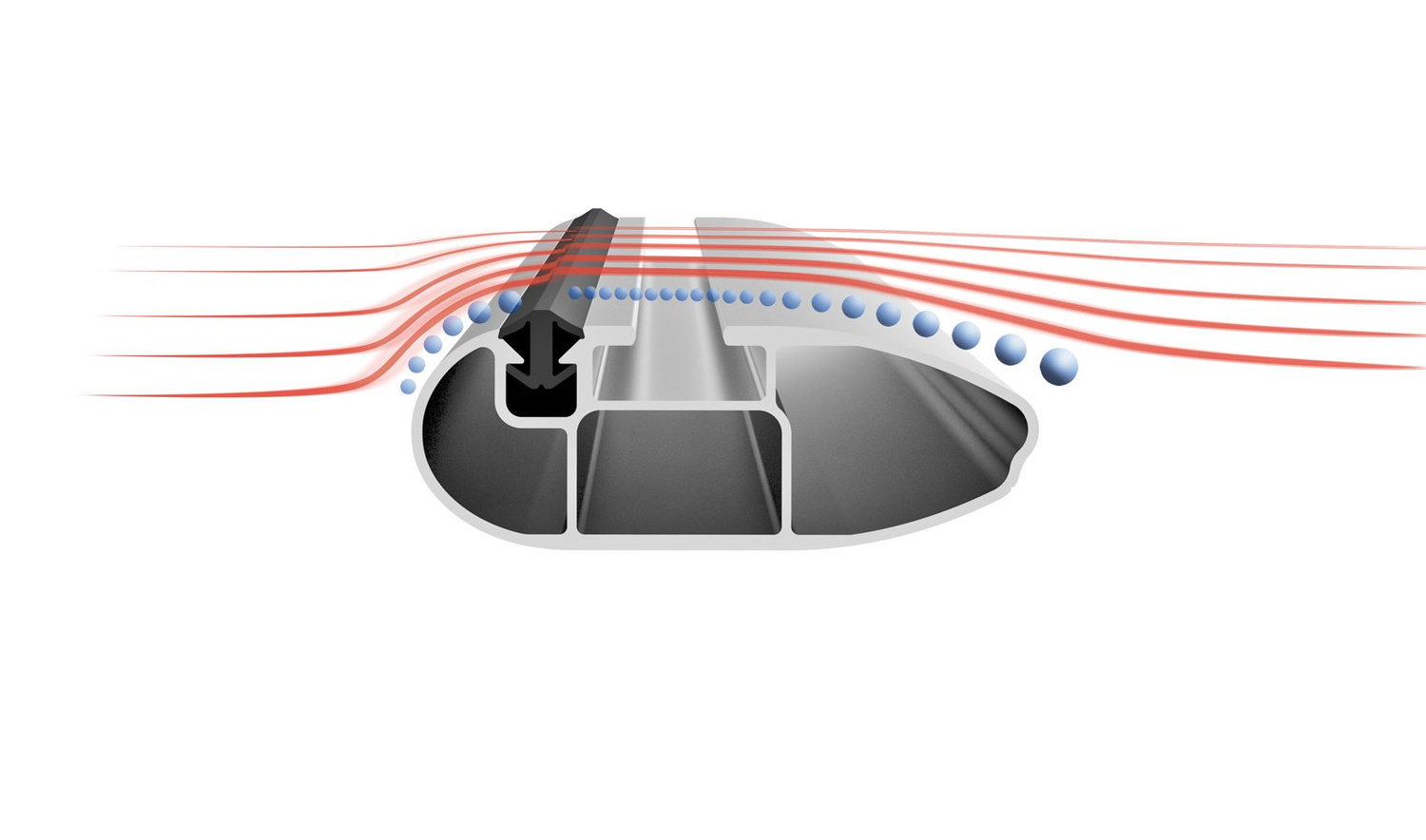 Suivant les tendances actuelles du marché des barres de toit, Atera a également décidé de remplacer la forme ovale par une poutre aérodynamique spécialement conçue, en forme d'aile d'avion, qui régule le flux d'air. La forme et les solutions utilisées pour les barres de toit Atera Signo sont modernes et innovantes. Atera est le premier fabricant de barres de toit à adopter la technologie WindBarrier . Cette technologie disperse l'air et réduit le bruit généré par la barre pendant la conduite. Le canal de montage situé en haut de la barre est toujours visible, ce qui facilite l'installation d'accessoires supplémentaires, tels que des porte-skis ou des porte-vélos.