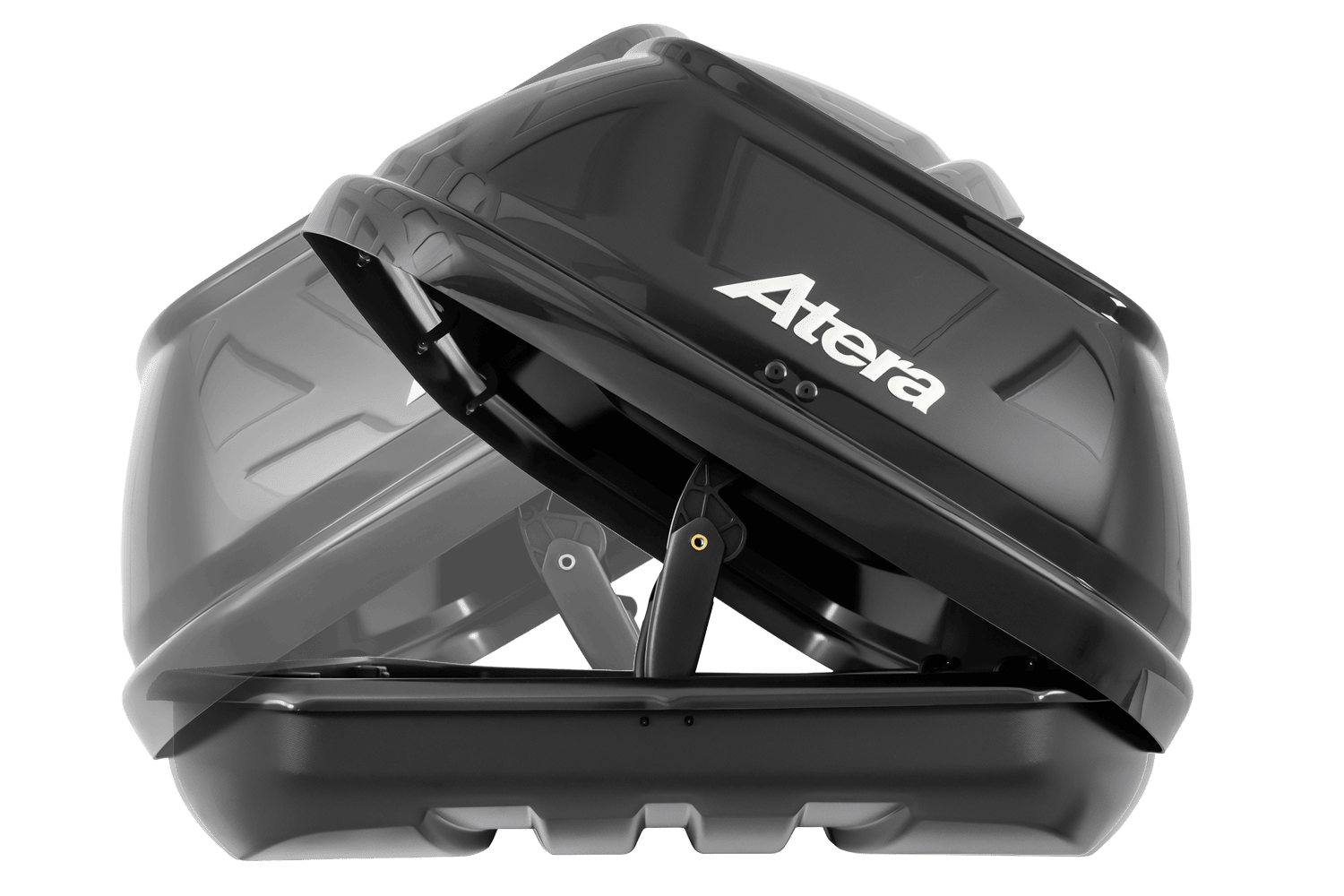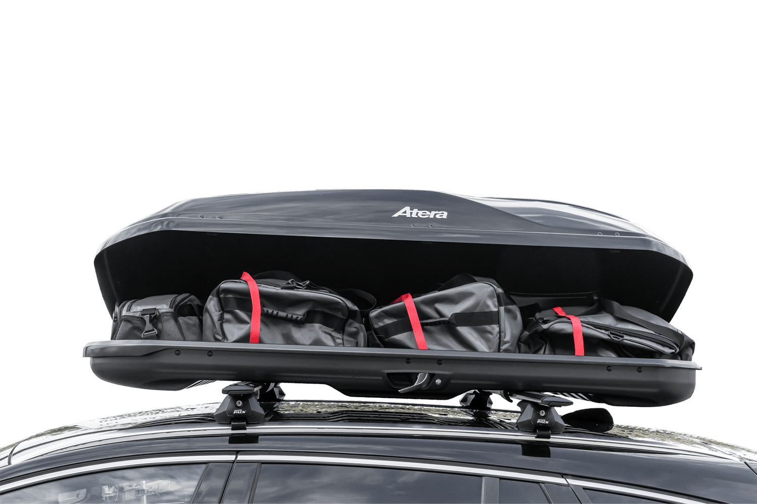 L'Atera Casar L est un coffre de toit moderne, idéal pour les longs séjours comme pour les déplacements quotidiens avec des bagages volumineux. Avec une capacité de 420 litres et une longueur de 191 cm, il peut transporter des valises, une poussette, du matériel de randonnée, ainsi que des skis et des snowboards jusqu'à 185 cm de long.