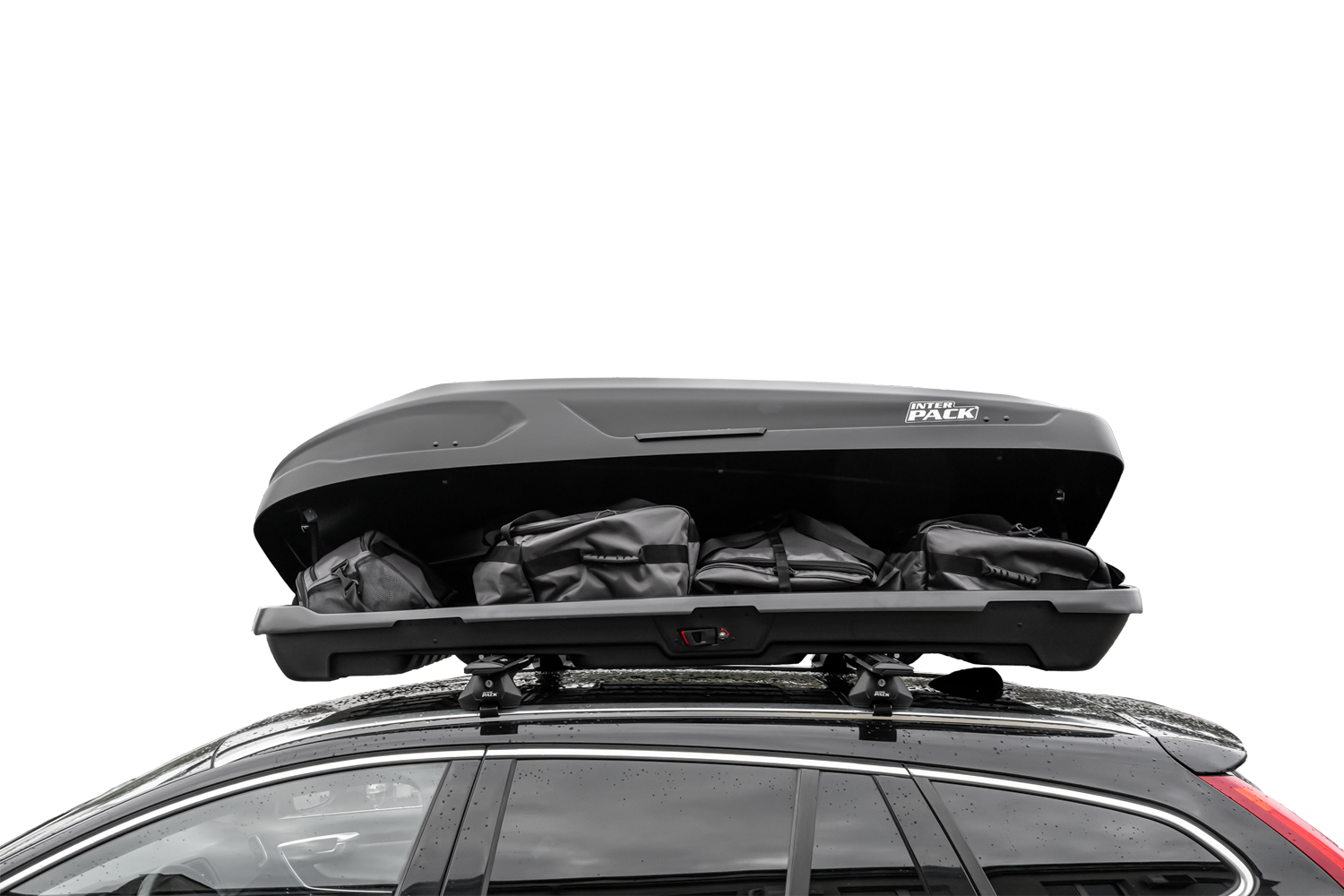 - Inter Pack Monsun M (noir mat) – Capacité de 470 l, longueur de 186 cm, charge utile de 75 kg, poids de 16 kg. Convient aux valises, sacs, skis et snowboards jusqu'à 165 cm. Système Rapid Fit avec dynamomètre, ouverture bidirectionnelle et verrouillage ce