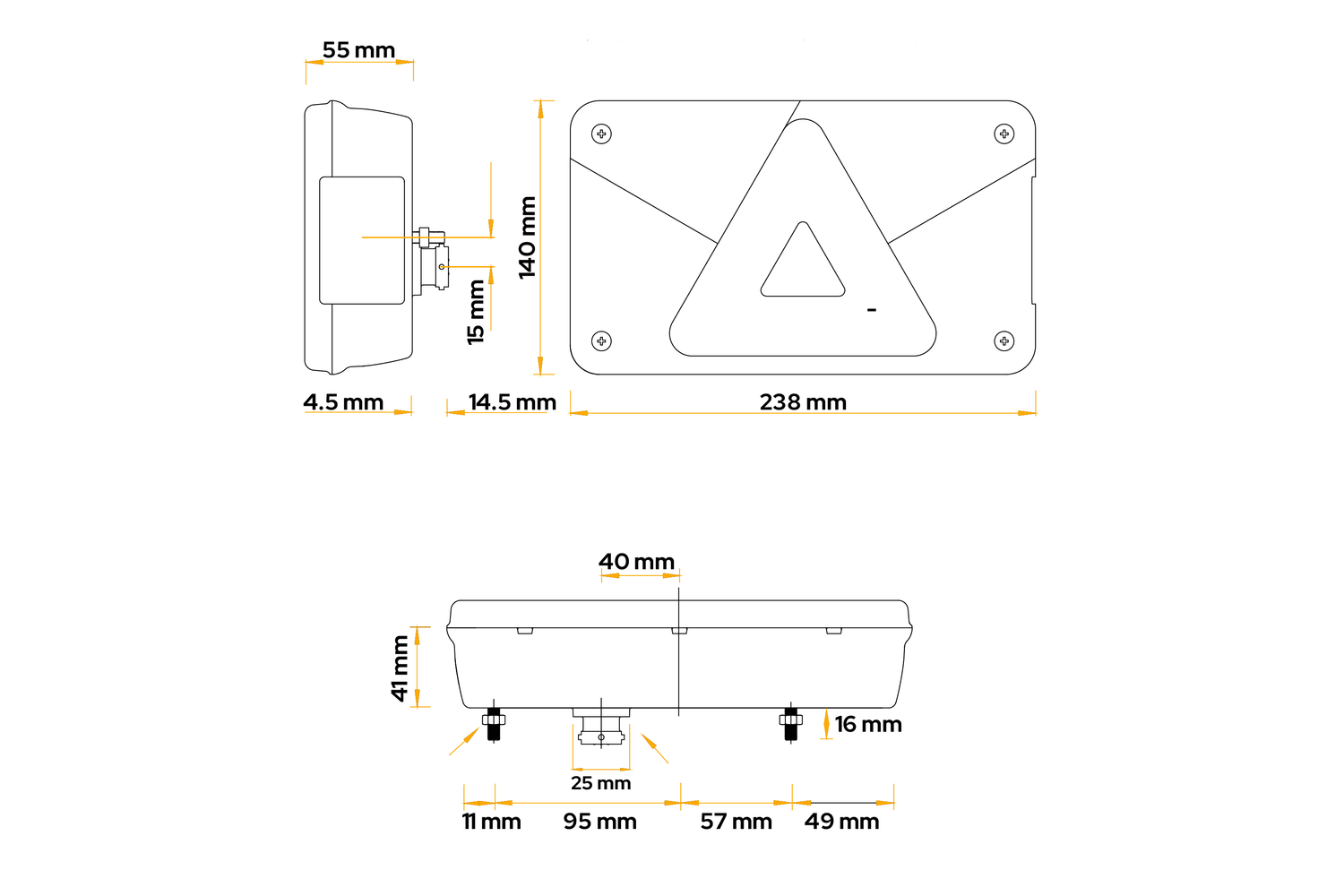 Le feu arrière Multipoint V LED d'ASPÖCK est destiné à être installé sur le côté droit du véhicule et a les dimensions suivantes : largeur 238 mm, hauteur 140 mm, profondeur 55 mm . Equipé d' un connecteur à baïonnette 5 broches , il permet une installation facile et rapide dans les remorques, les bus et les dépanneuses .