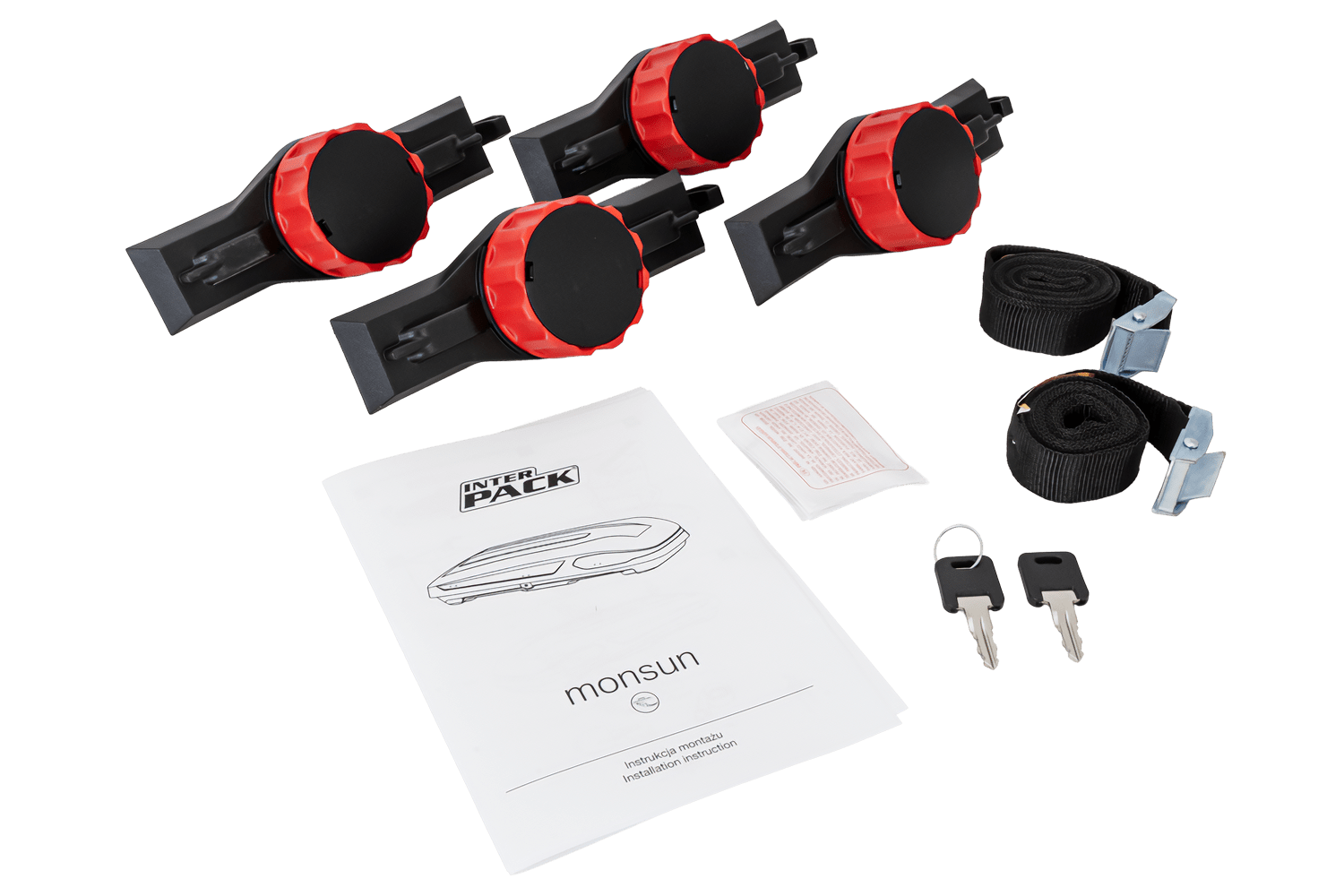 L'ensemble comprend des sangles textiles pour sécuriser la charge.