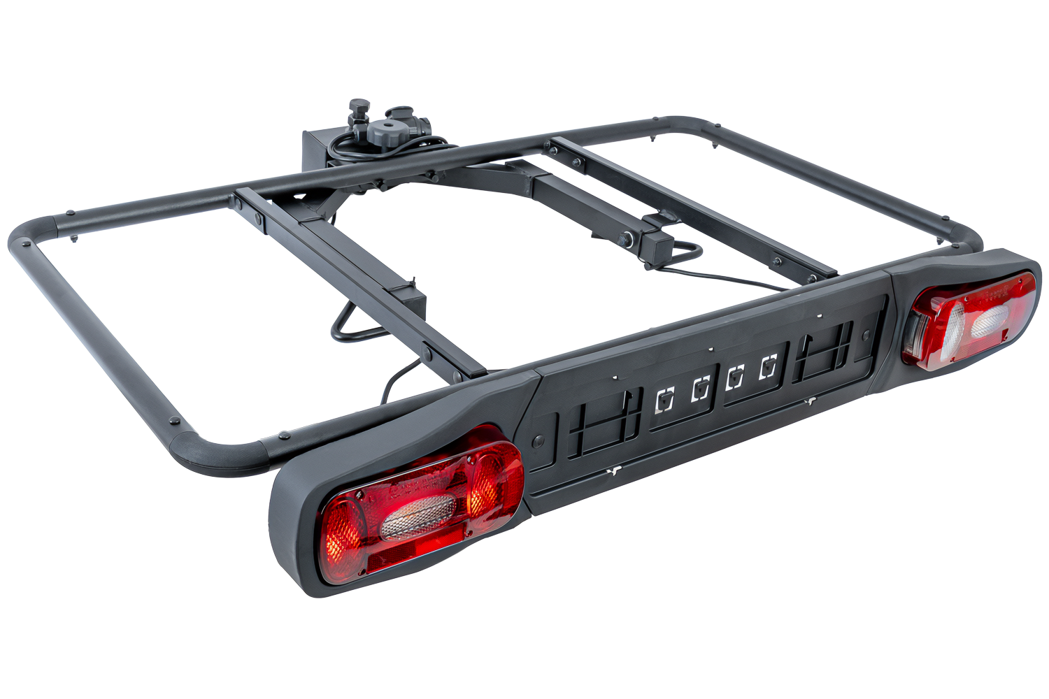 - Le kit Re-cargo comprend une plateforme d'attelage et un coffre. Ce dernier permet de transporter divers types de marchandises, été comme hiver.