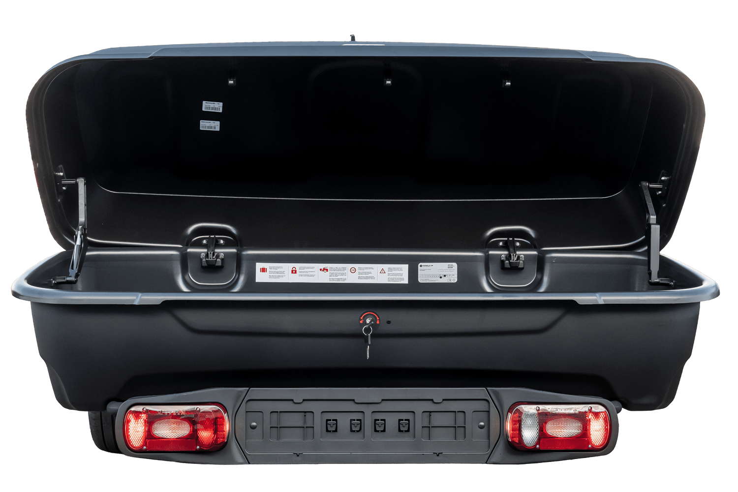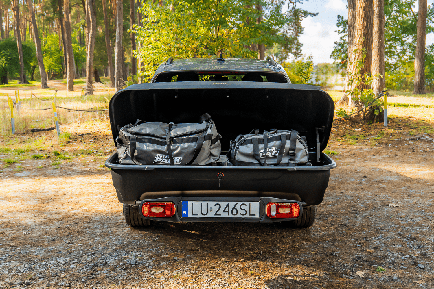 Le coffre à bagages Inter Pack Re-cargo vous permet de transporter des marchandises de différentes tailles sur un crochet. Il est idéal pour transporter différents types de bagages, été comme hiver. Il a une capacité de 410 litres !