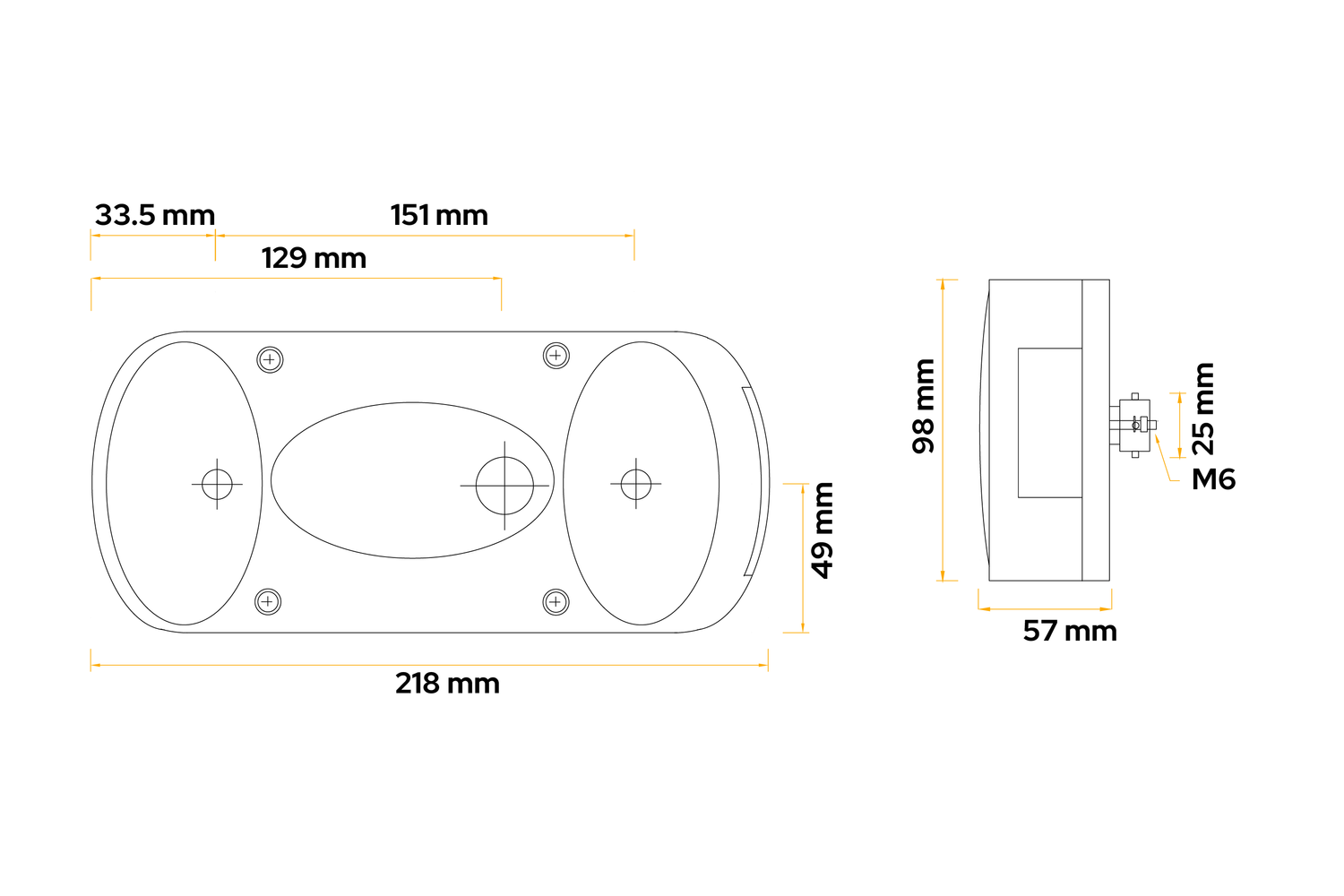 Le feu arrière Midipoint II d'ASPÖCK est destiné à être installé aussi bien sur le côté gauche que droit du véhicule et a les dimensions suivantes : largeur 218 mm, hauteur 98 mm, profondeur 57 mm. Equipé d' un connecteur à baïonnette 5 broches , il permet une installation facile et rapide dans les remorques, les bus et les dépanneuses.