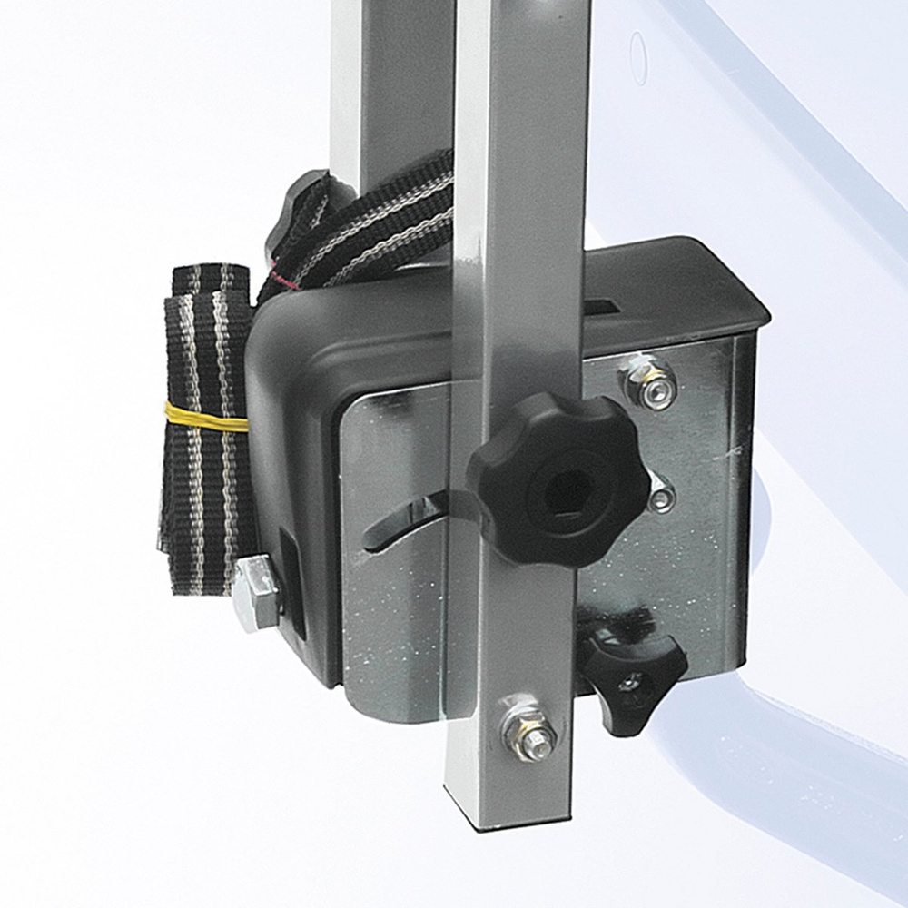 Le porte-vélos n'est pas équipé d'éclairage supplémentaire ; pour plus de sécurité, nous recommandons l'achat d'une barre lumineuse avec support de plaque d'immatriculation (aussi appelée plaque lumineuse). Pour les vélos à cadre incliné ou pour femmes, un adaptateur est nécessaire, imitant un cadre « homme » et permettant de transporter le vélo en toute sécurité sur le porte-vélos Peruzzo Arezzo 4.