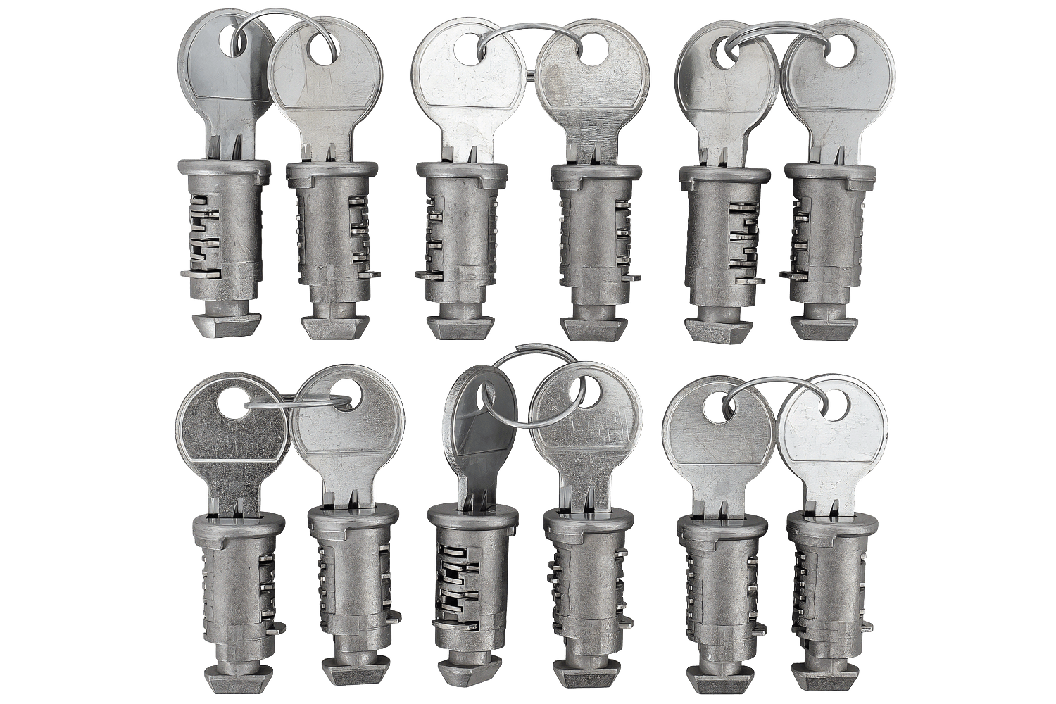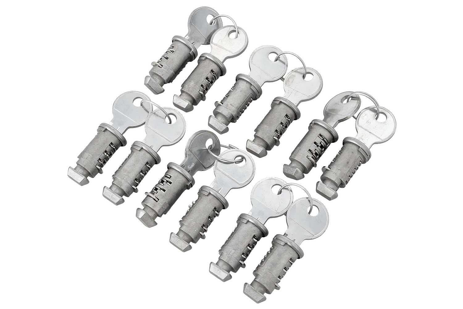 Cadenas universels pour porte-vélos, barres de toit, porte-vélos sportifs ou poignées de sécurité. Tous les inserts de ce kit ont le même numéro de clé.