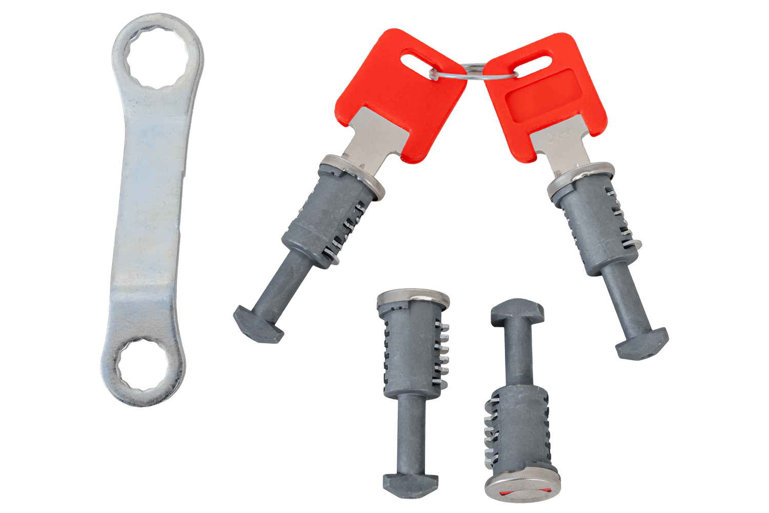Cet ensemble comprend quatre cadenas et deux clés assorties. Compatible uniquement avec les racks Pacific G3.