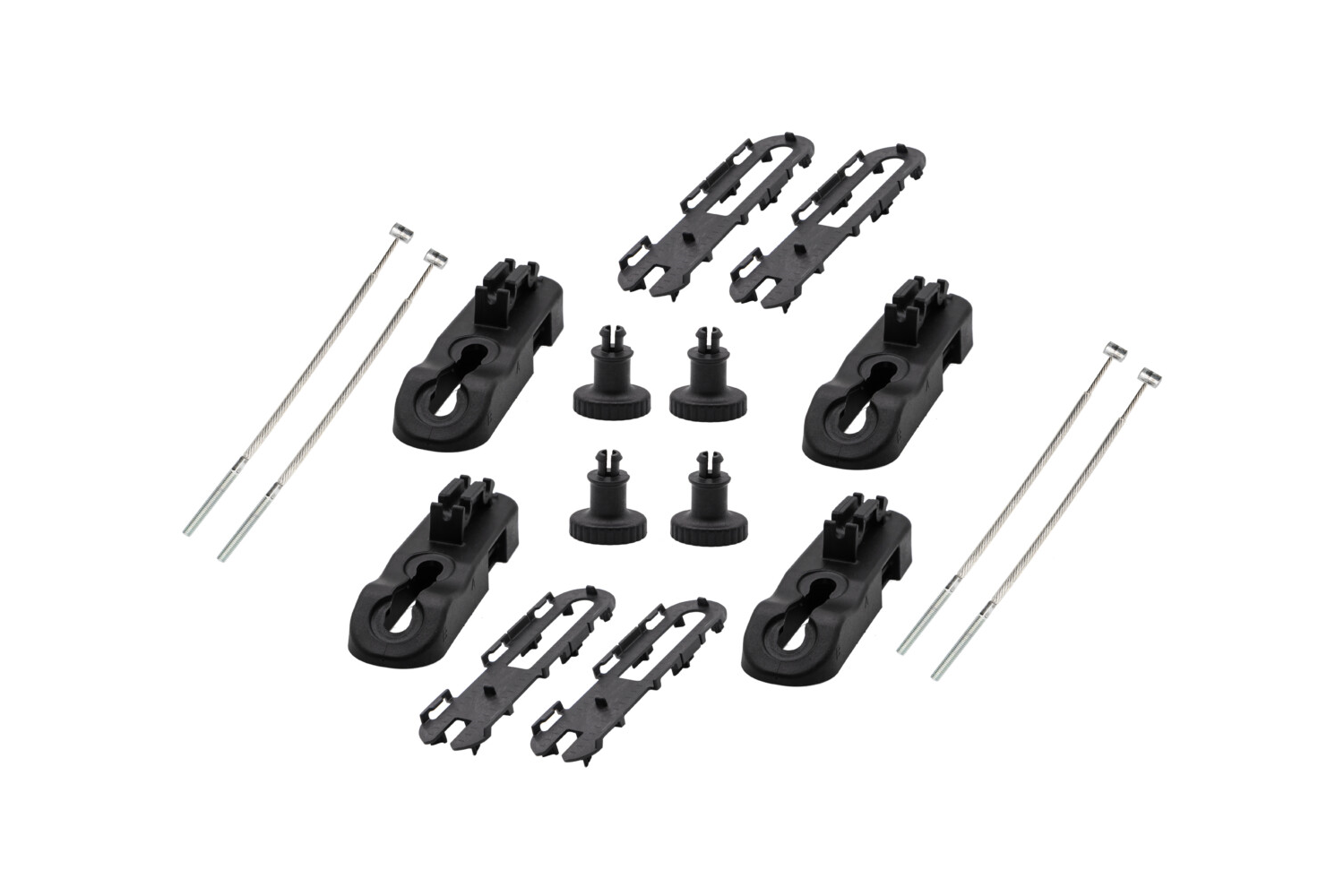 - Fixations complètes pour coffres de toit Inter Pack Stella équipés d'un guide (version G2).