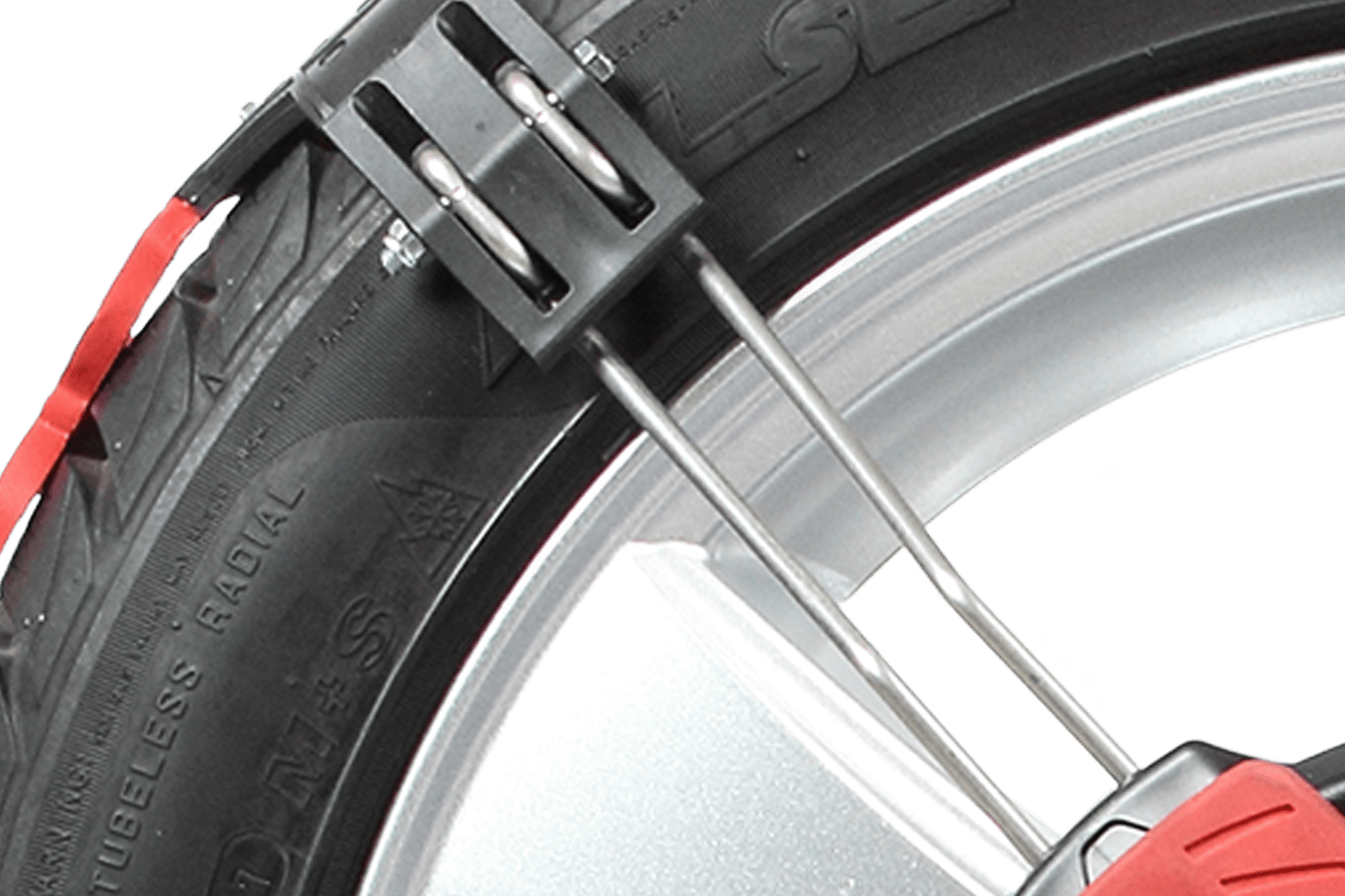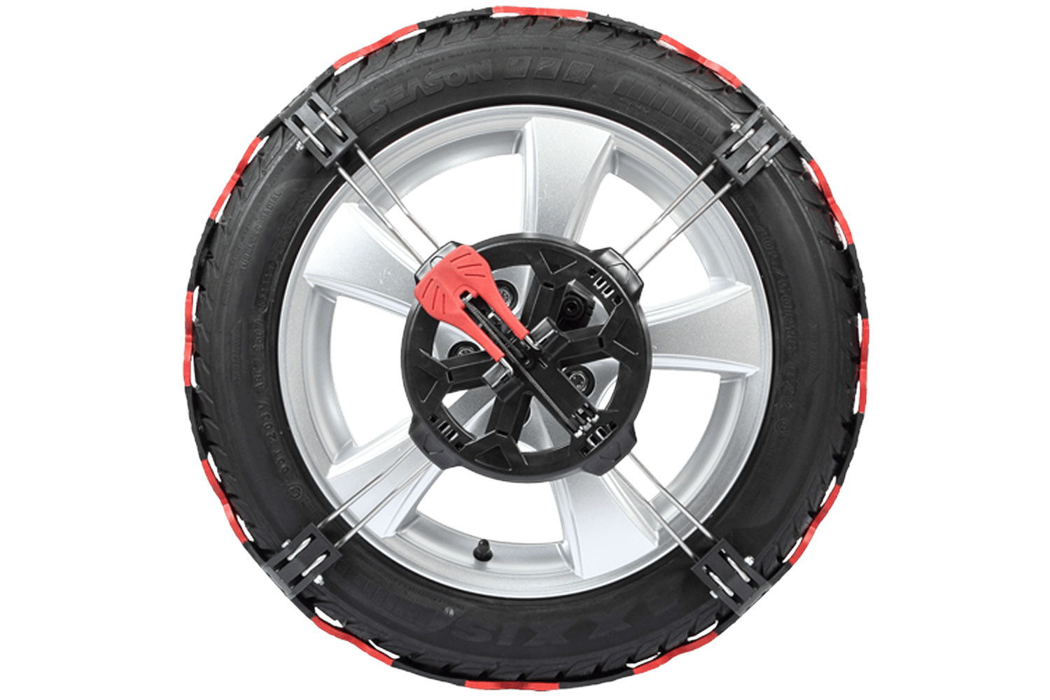 Les chaînes Polare Grip sont équipées d'un système de fixation universel Grâce à leur conception unique et ajustable, les chaînes s'adaptent parfaitement au pneu. Un système de serrage intégré avec levier de tension permet une installation rapide et facile. L'installation se fait à l'extérieur de la roue, sans intervention à l'intérieur du passage de roue, ce qui élimine tout risque de salir les vêtements. Une fois montées sur les roues, les chaînes se centrent automatiquement dès le démarrage et ne nécessitent aucun retensionnement.