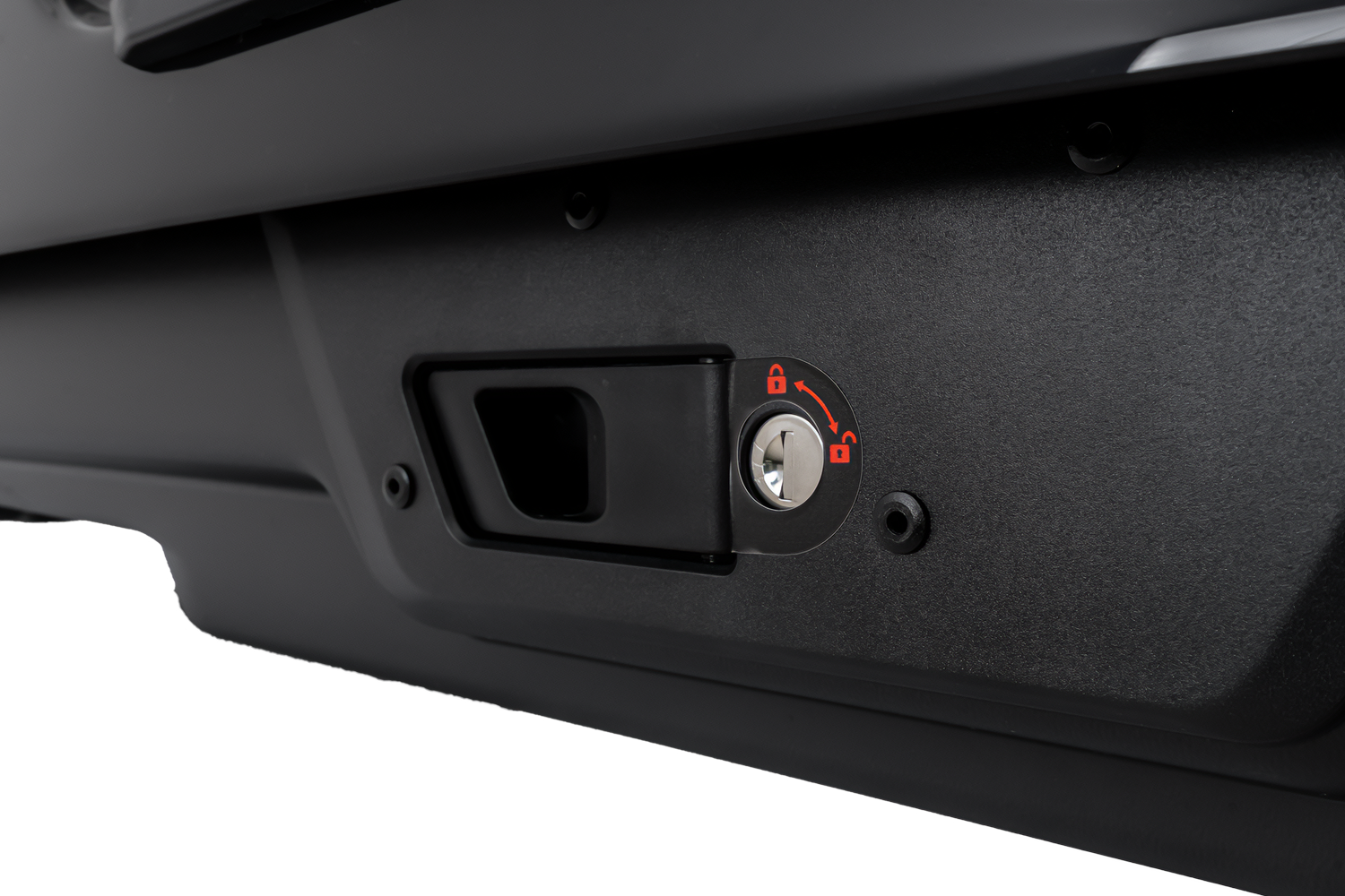 Le système d'ouverture bidirectionnelle garantit un accès rapide à l'intérieur, quel que soit le côté du véhicule. Le verrouillage centralisé trois points sécurise efficacement les objets transportés, et la clé ne peut être retirée que lorsque le couvercle est correctement fermé. Le mécanisme Smart Lock avec poignée indique la bonne fermeture, et les loquets automatiques empêchent toute ouverture accidentelle.