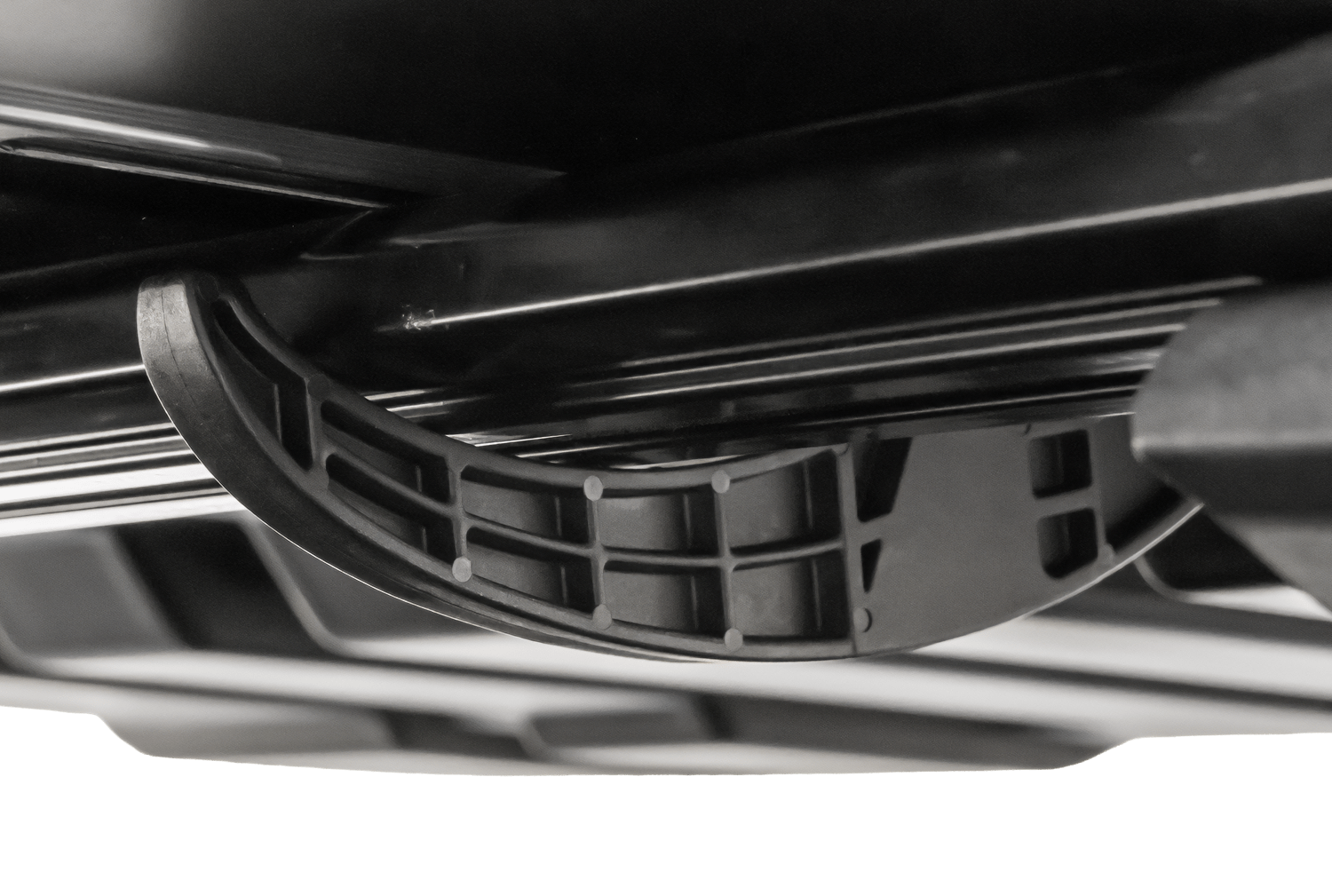 Le système de fixation Rapid Fit assure une installation rapide, sûre et facile du coffre sur la galerie de toit. Il s'adapte à tous les types de barres : rectangulaires, ovales et en aile.