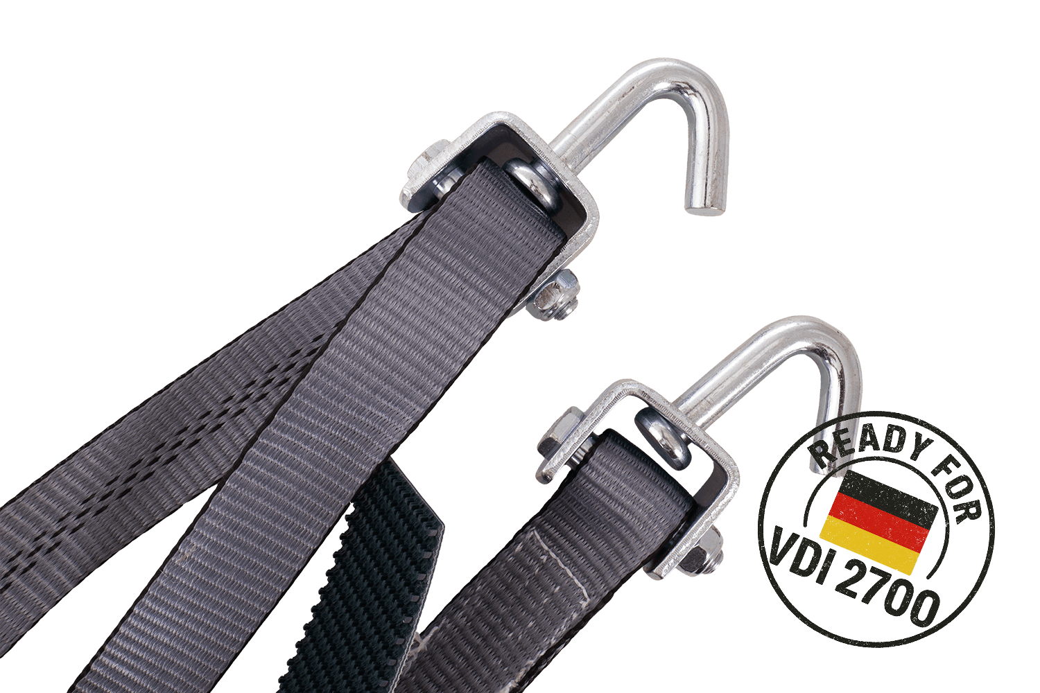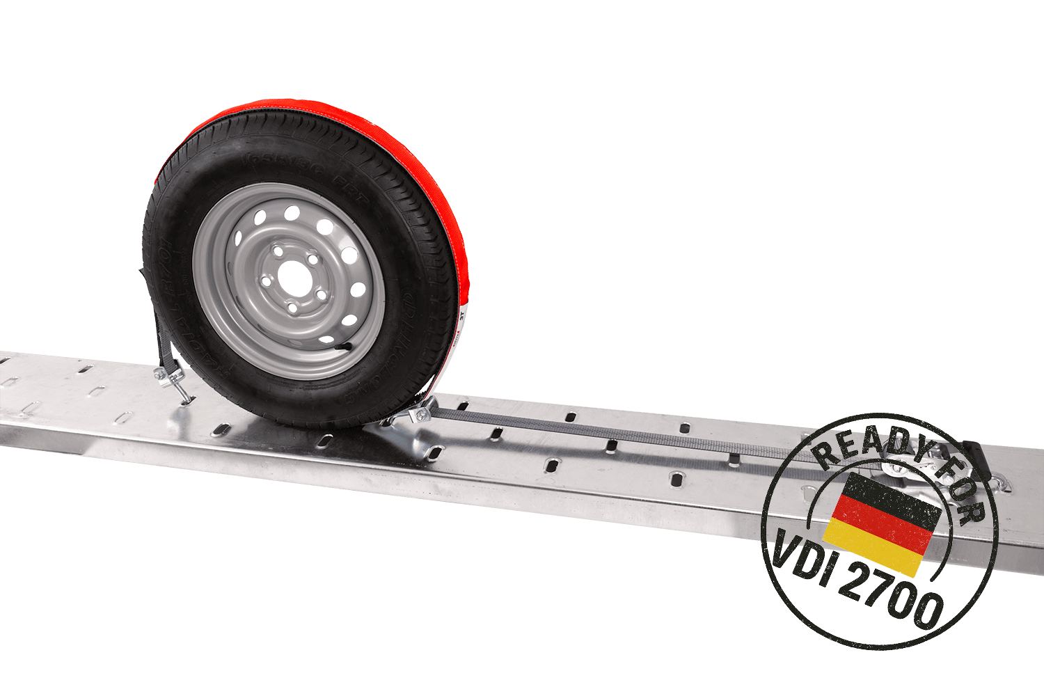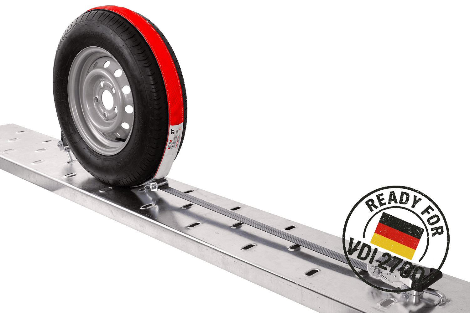 La directive VDI 2700 partie 8.1 est une norme technique allemande qui spécifie les exigences détaillées pour l'arrimage des véhicules transportés sur des remorques à plateau et des remorques. Concernant les sangles d'arrimage, notamment pour le cerclage des roues, cette directive précise, entre autres, le mode de disposition des sangles, le nombre de points d'arrimage requis (par exemple, système à 3 points), les paramètres de force de tension minimale et les principes de leur marquage et de leurs homologations techniques. La conformité à la norme VDI 2700 8.1 garantit que les sangles répondent à des exigences strictes en matière de sécurité, de fiabilité et d'efficacité d'immobilisation du véhicule transporté, un critère crucial pour le transport professionnel de voitures particulières et de camionnettes. L'utilisateur est ainsi assuré que le système d'arrimage utilisé est conforme aux normes européennes et allemandes en vigueur en matière de sécurité routière.