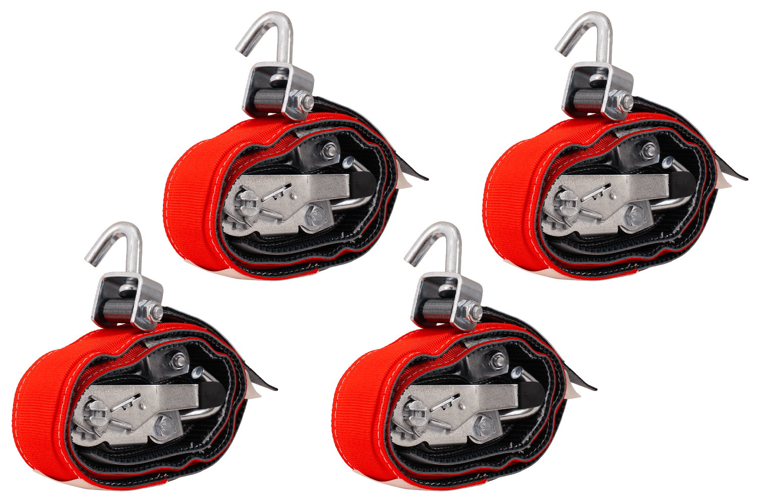 Les sangles sont fabriquées en matériau PES (100 %) durable, résistant à l'abrasion et à l'étirement. Elles sont équipées de trois crochets rotatifs en acier : deux fixés à la ceinture et un intégré au tendeur. Tous les éléments métalliques, y compris la boucle, sont solides et résistants à la corrosion, garantissant une fixation sûre et stable. La poignée du tendeur caoutchoutée offre un avantage supplémentaire, améliorant le confort de travail, même avec des gants.