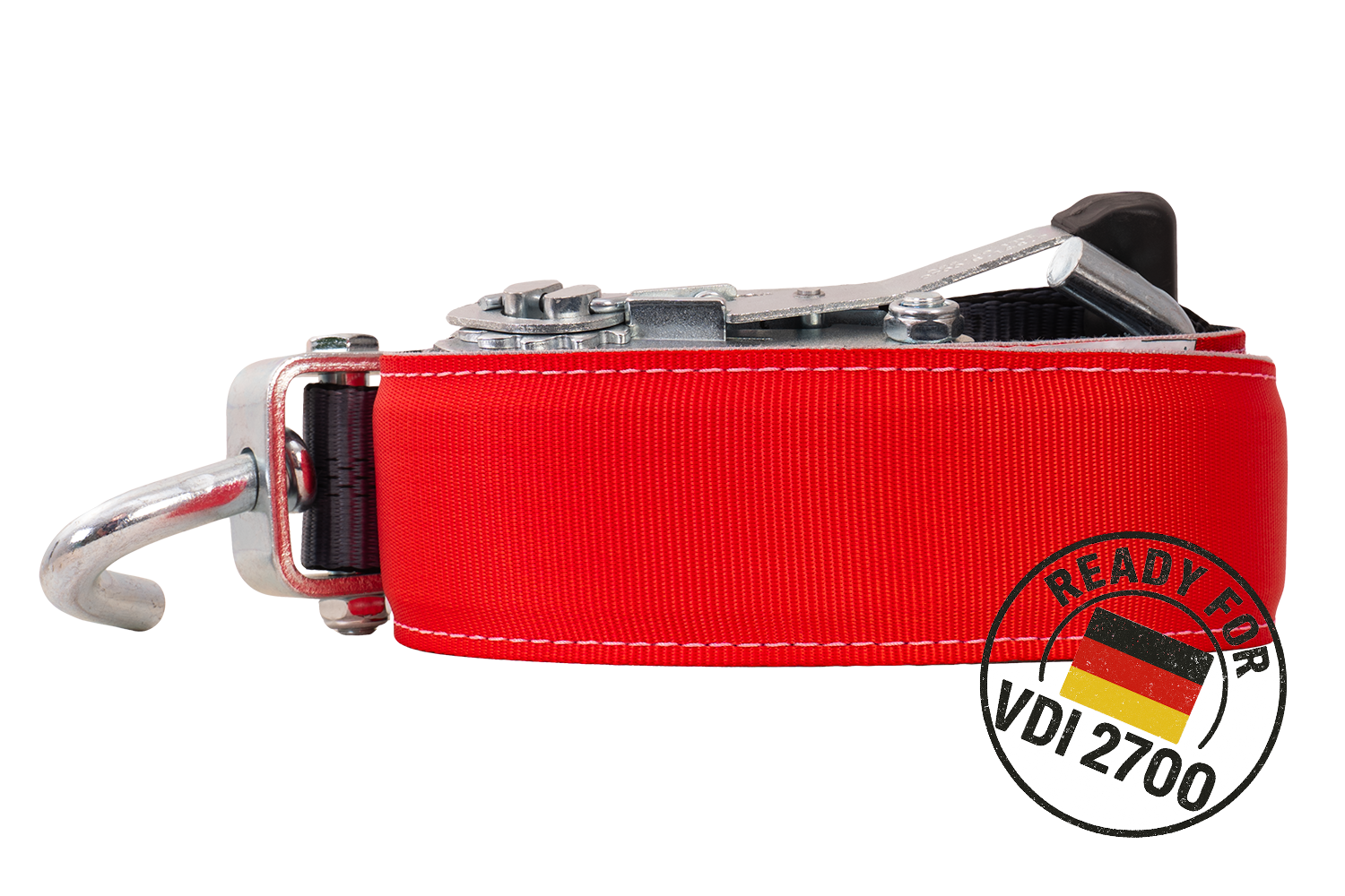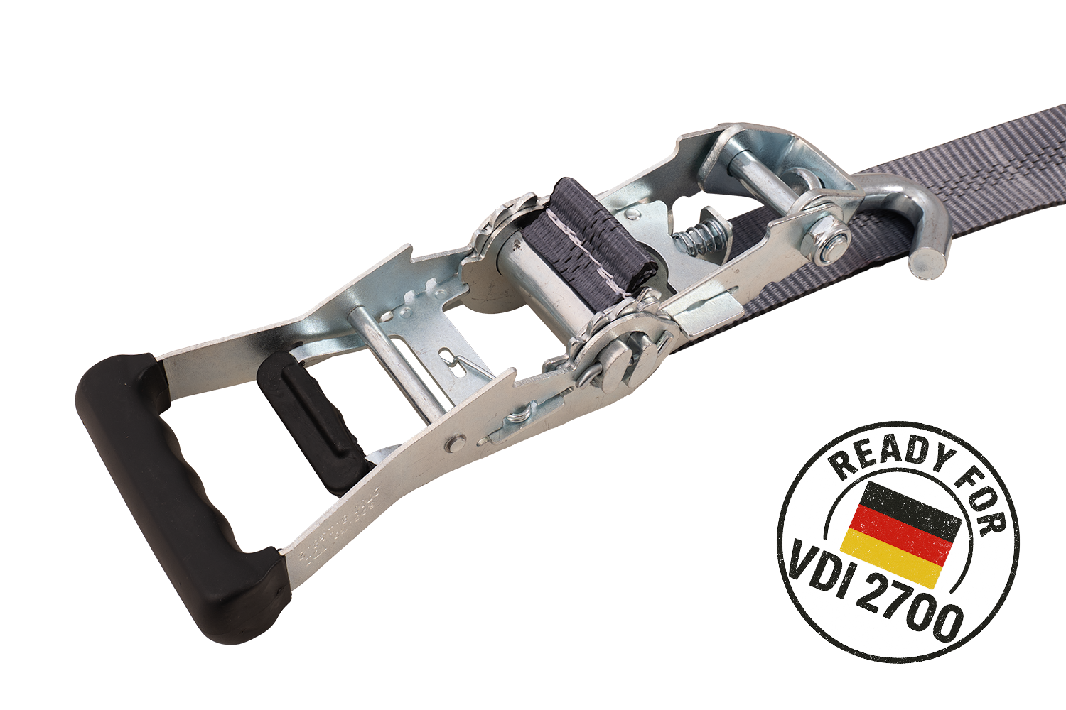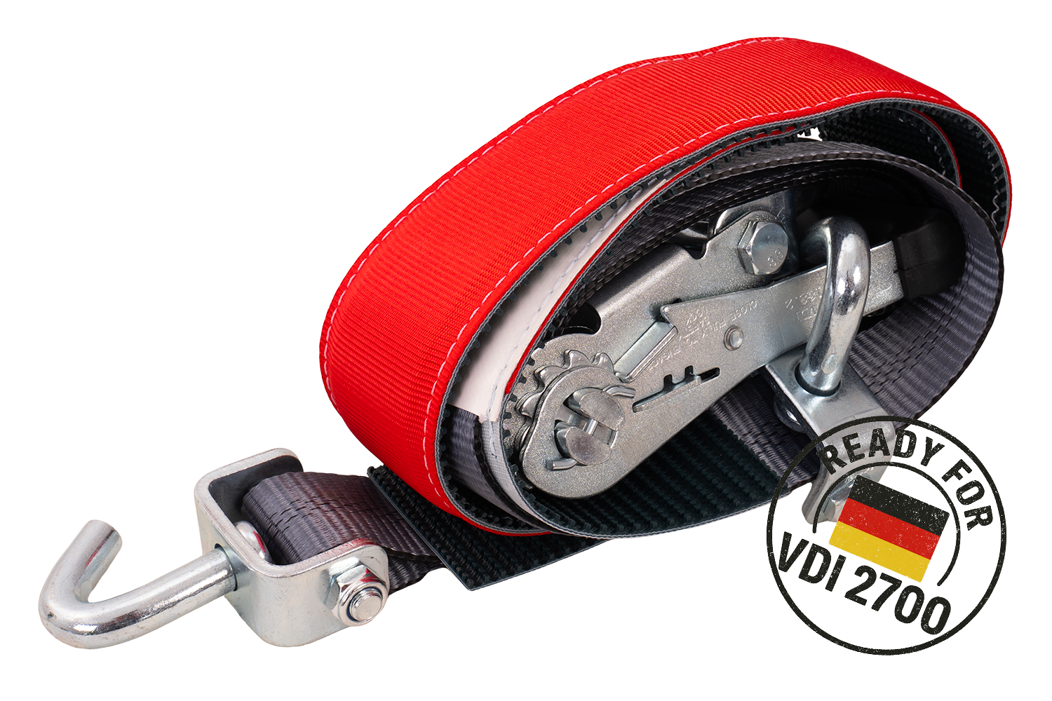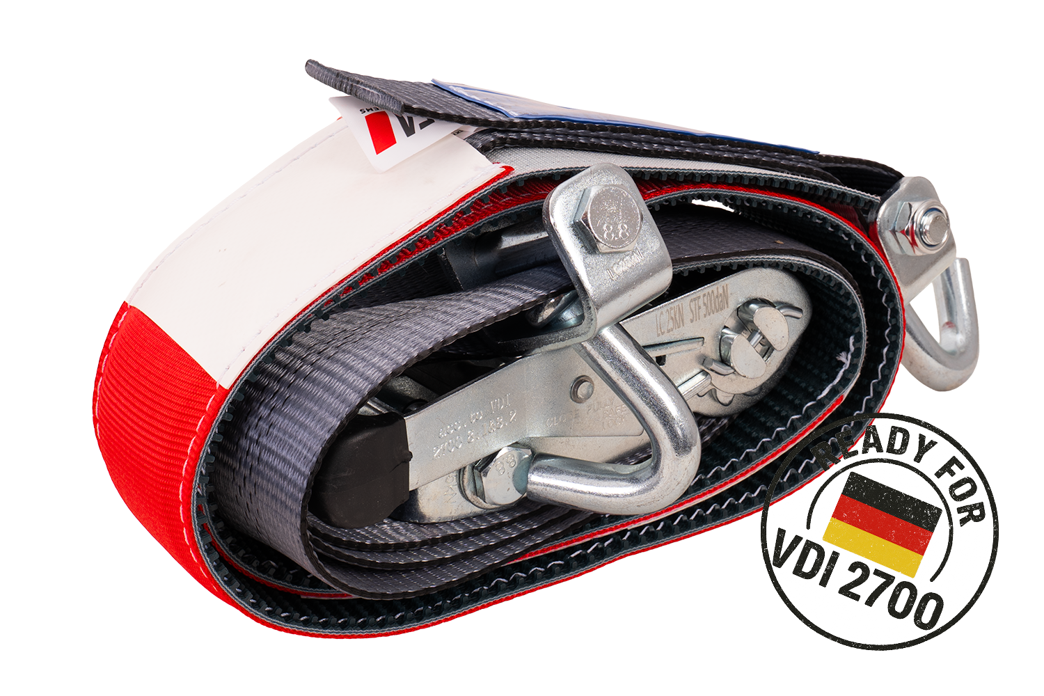 Il s'agit d'une norme européenne spécifiant les exigences relatives aux sangles d'arrimage à tendeur manuel utilisées pour l'arrimage des charges lors du transport routier. La norme EN 12195-2 définit, entre autres, les valeurs des forces de tension (SHF), de la force d'arrimage (LC), de la résistance des sangles, les essais dynamiques et la méthode de marquage du produit. Les sangles certifiées conformes à cette norme répondent à toutes les exigences de sécurité européennes et peuvent être utilisées légalement dans toute l'UE.