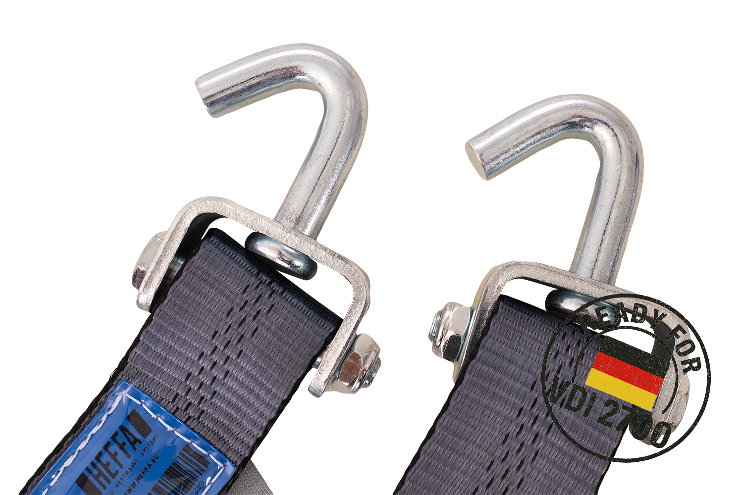 • 4 sangles de transport HEFFA, 2,8 m long, résistance 5 tonnes chacune. Sécurité les roues des véhicules en les sanglant sur les remorques.Disposent d'un système de montage à 3 points qui assure une stabilisation efficace de la voiture sur la plateforme.