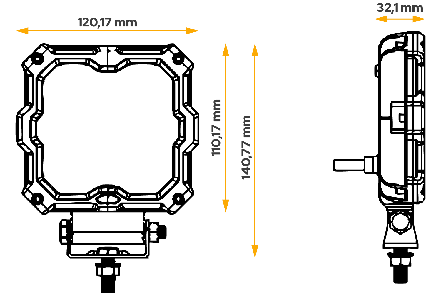 La lampe de travail X-SPIDER 2 de KAMAR est une source lumineuse LED universelle conçue pour les environnements difficiles. Elle est idéale pour les véhicules utilitaires, les engins agricoles, de chantier et tout-terrain, ainsi que pour les bateaux et comme éclairage d'appoint pour les bus et les camions. De conception robuste, elle mesure 120 mm de large, 110 mm de haut et 32 mm de profondeur et fonctionne sur une plage de tension de 12 à 24 V. Son câble de 0,3 m facilite l'installation et le raccordement, même dans les zones difficiles d'accès. Son boîtier est fabriqué à partir de matériaux durables, garantissant une résistance aux chocs et aux dommages mécaniques dans des conditions de travail exigeantes.