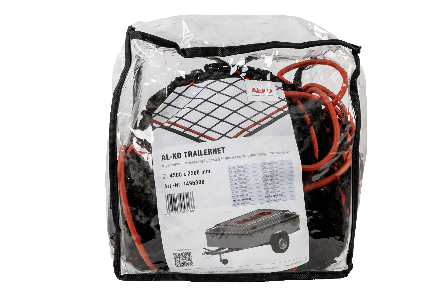- Le filet de chargement AL-KO 1496308, de 2500 x 4500 mm avec mailles de 30x30 mm et cordon élastique, sécurise les chargements sur les remorques. Résistant aux intempéries et certifié TÜV SÜD, il garantit qualité et sécurité de transport.