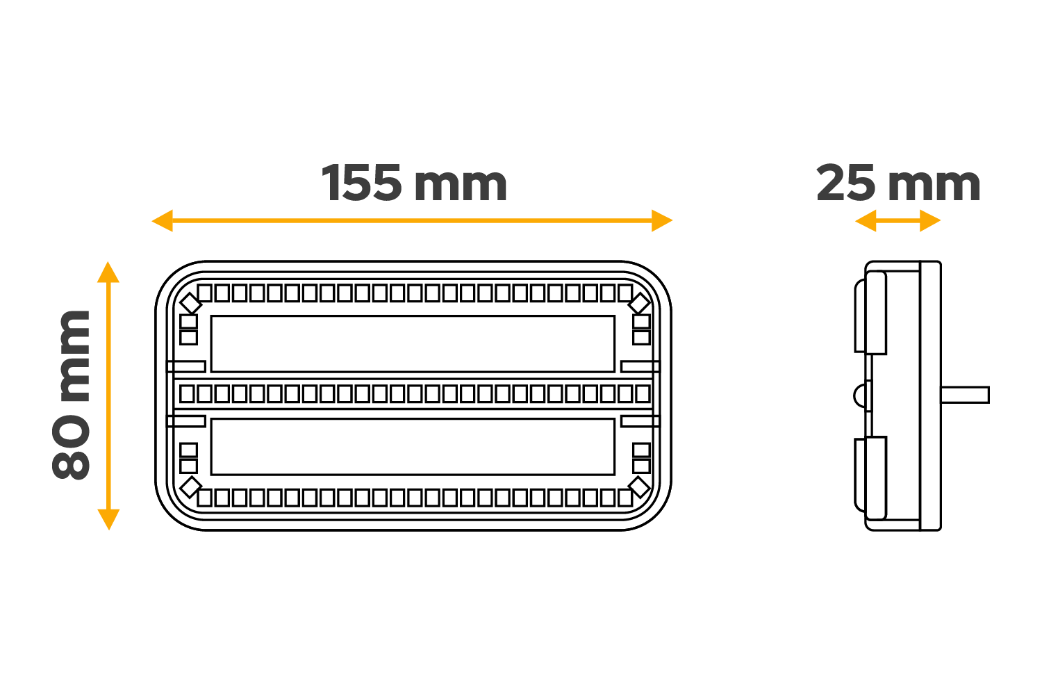 Les feux arrière, classés IP65, sont entièrement protégés contre la poussière et les jets d'eau basse pression, quelle que soit leur direction. Grâce à ces propriétés, ils sont parfaitement adaptés aux conditions de travail exigeantes, en présence de poussière, de saleté et de risque de contact avec l'eau, par exemple dans les véhicules utilitaires, les remorques, les engins agricoles et de chantier. Ils garantissent fiabilité et durabilité, garantissant une utilisation sûre, même dans des environnements difficiles.