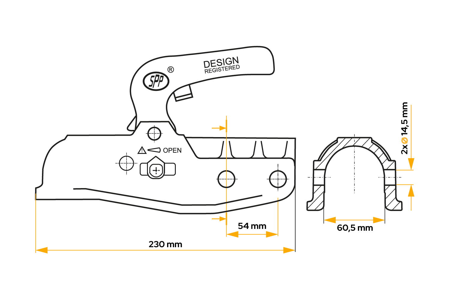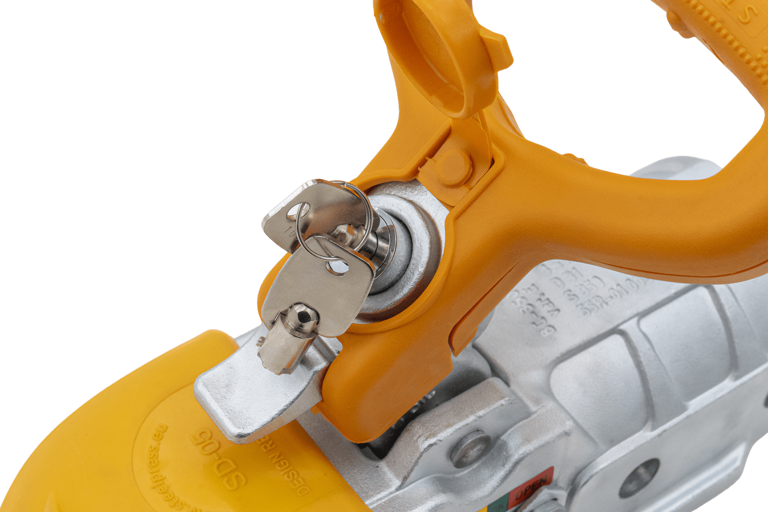 La tête d'attelage est dotée d'un corps moulé sous pression et d'un levier moulé sous pression avec revêtement en plastique, équipé d'un antivol renforcé et d'une prise de remorque. L'attelage est doté d'un revêtement en élastomère SD souple et résistant qui protège l'arrière du véhicule des rayures et les jambes de l'utilisateur des chocs lors des manœuvres. Cette solution allie sécurité et simplicité d'utilisation.