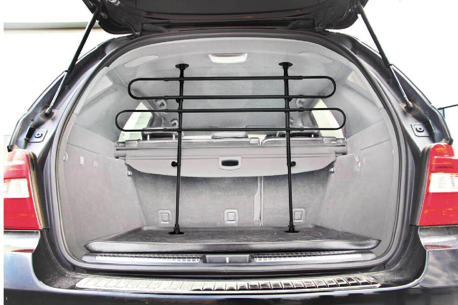 - La barrière de sécurité GRG-1 LAMPA en deux parties sépare l'espace de chargement de l'habitacle, permettant ainsi le transport d'un chien ou de bagages en toute sécurité. Adaptée à la plupart des véhicules, elle est réglable en largeur et en hauteur.