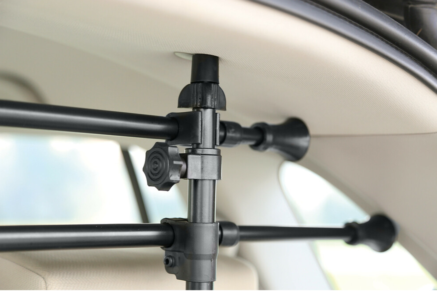 La barrière se fixe rapidement et sans outils aux appuis-têtes des sièges. Livrée pré-assemblée, elle est facilement réglable en hauteur et en largeur. Ses éléments télescopiques permettent de l'incliner pour l'adapter à la forme de votre tronc. Sa conception compacte permet un réglage facile en quelques secondes.