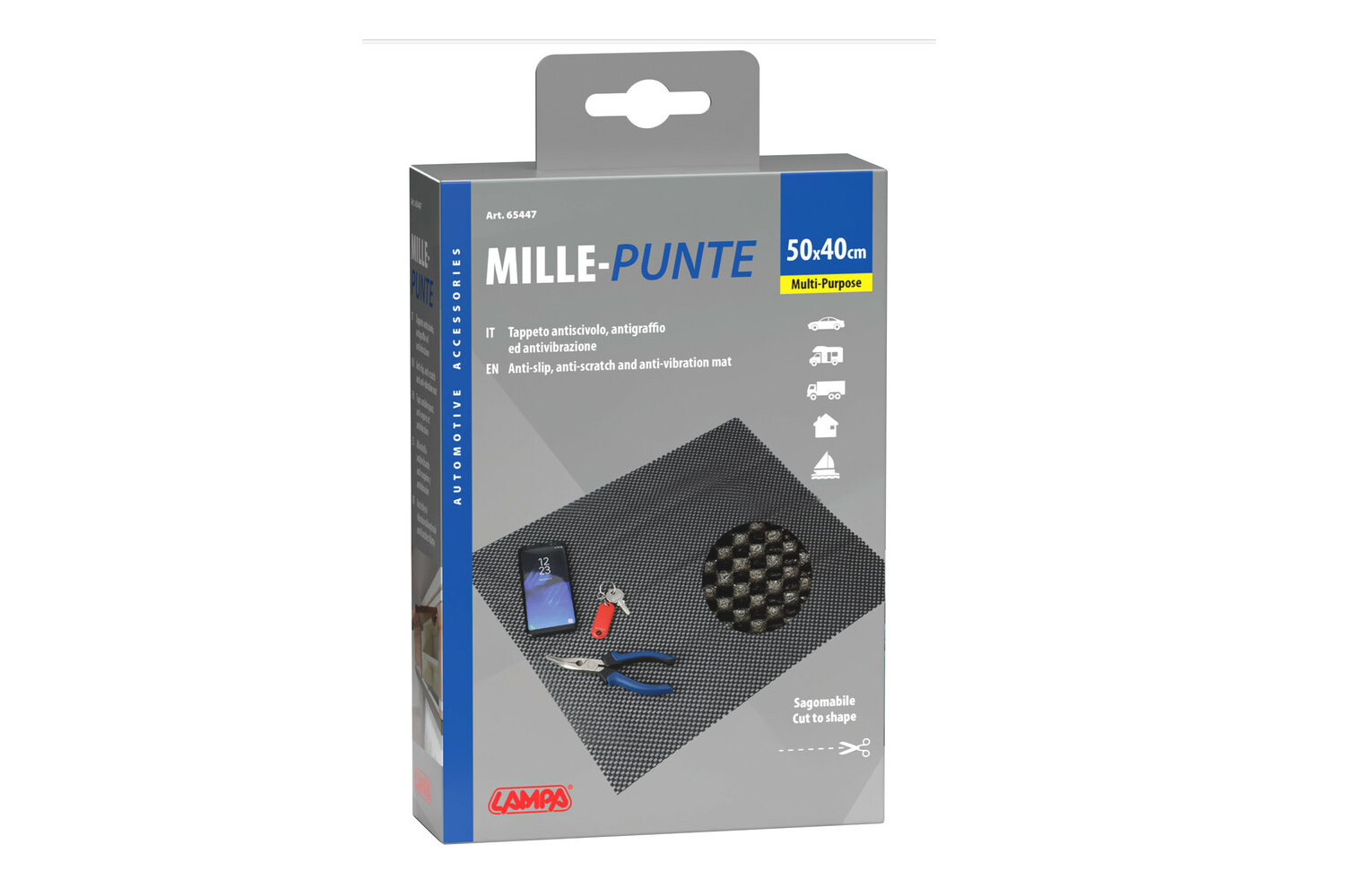 - Ce tapis antidérapant LAMPA de 50 x 40 cm est pratique pour stabiliser les petits objets pendant la conduite. Conçu pour le tableau de bord de la voiture, il peut également être utilisé à la maison ou au bureau comme tapis sous les accessoires.