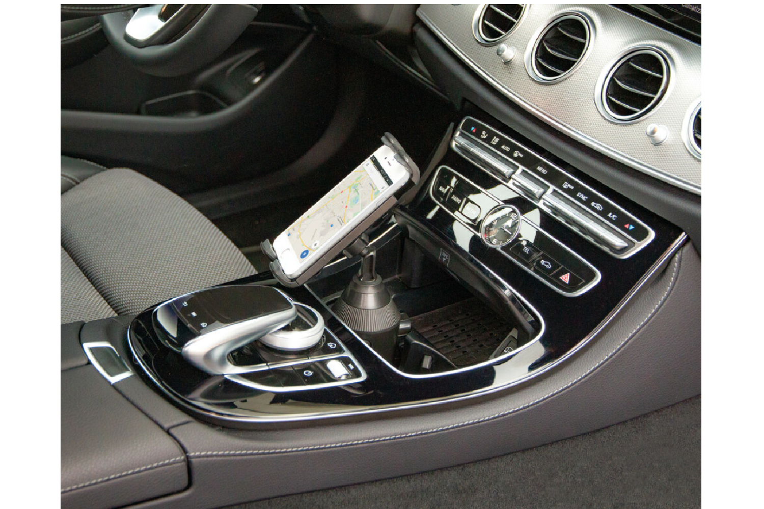 L'Expansion Grip, un support pour téléphone ou tablette intégré au porte-gobelet, est un moyen pratique de fixer votre appareil dans un endroit stable et facilement accessible. Son installation dans le porte-gobelet n'obstrue ni le pare-brise ni les grilles d'aération, garantissant ainsi une visibilité et une circulation d'air optimales. Les bras du support sont dotés d'inserts en caoutchouc antidérapants et anti-rayures qui maintiennent fermement votre smartphone ou tablette et protègent la coque. Sa conception ne gêne pas les ports auxiliaires et de charge, vous permettant ainsi d'utiliser vos câbles pendant la conduite. Des crochets de rangement pour câbles sont situés à l'arrière pour faciliter la gestion des câbles.