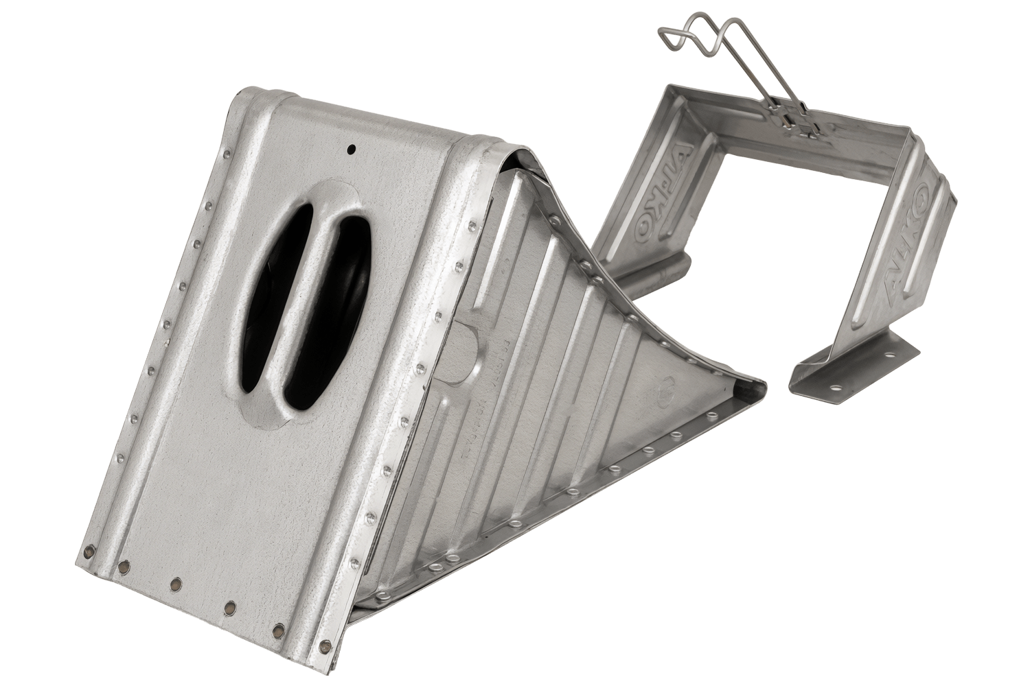 Fabriquée en acier de haute qualité et zinguée, la cale est durable et résistante à la corrosion et aux dommages mécaniques. Elle résiste parfaitement aux intempéries, du gel aux températures élevées (plage de fonctionnement : -30 °C à +60 °C). Sa construction métallique assure un blocage fiable des roues, même sous de lourdes charges. La conformité à la norme DIN 76051 confirme son haut niveau de qualité de fabrication et de sécurité.