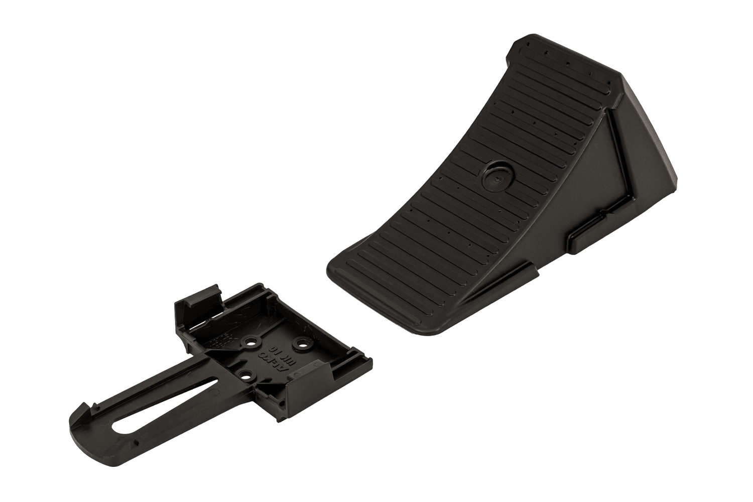 L'ensemble comprend également un support de fixation UK 10, permettant une fixation sûre et permanente de la cale directement sur la carrosserie du véhicule. La forme spécialement conçue du support s'adapte parfaitement à la cale, l'empêchant de bouger pendant la conduite. Sa construction robuste et sa résistance aux agressions extérieures garantissent une longue durée de vie, même en cas d'utilisation intensive. L'installation du support est simple et rapide, facilitant l'organisation de l'espace et permettant un accès immédiat à la cale en cas de besoin.