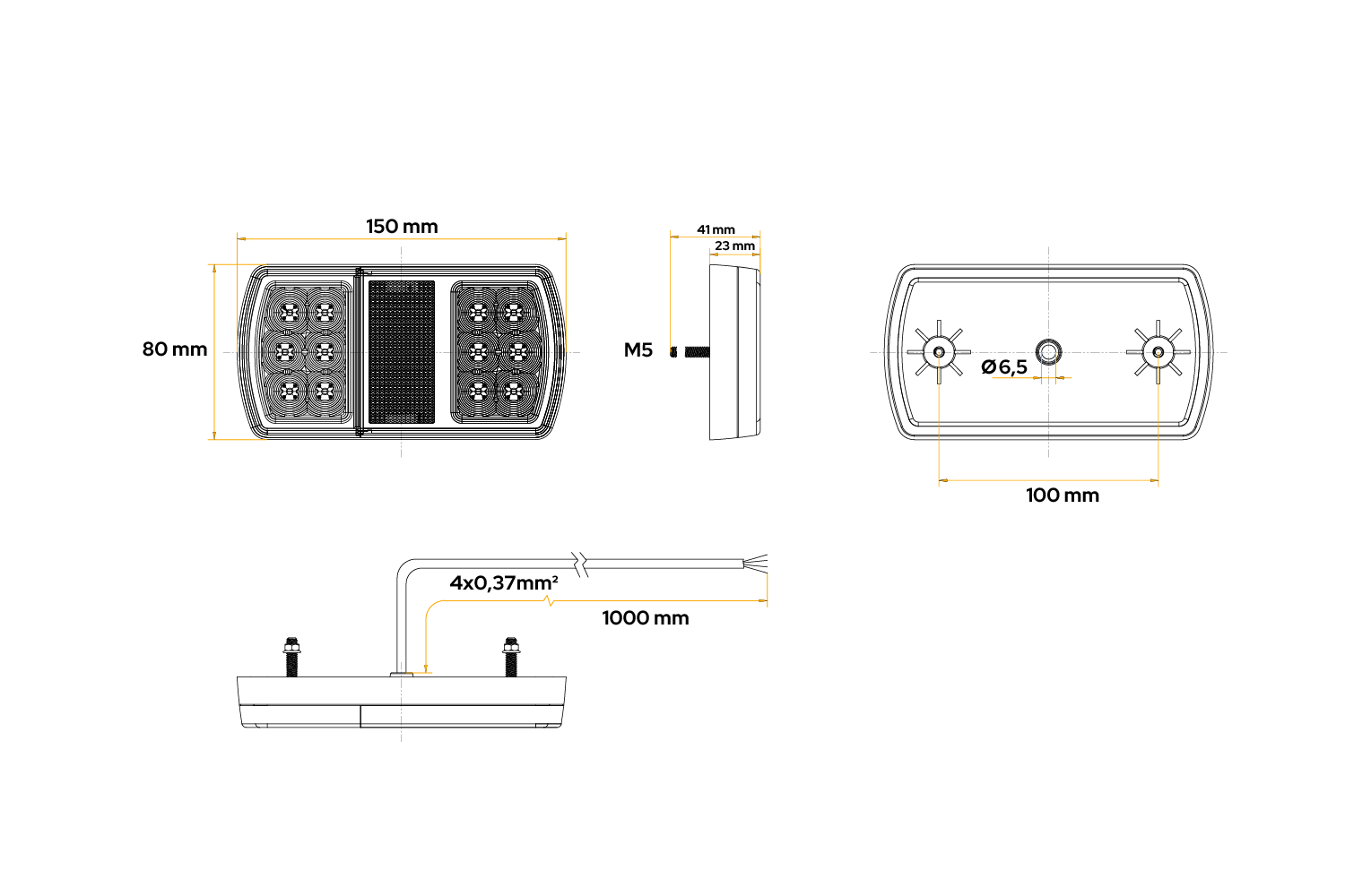 Le feu arrière LED 41-139 d'ASPÖCK, destiné à être installé aussi bien sur le côté gauche que droit du véhicule, a les dimensions suivantes : largeur 150 mm, hauteur 80 mm, profondeur 23 mm. Adapté pour fonctionner dans la plage de tension 12 V, il est utilisé dans les remorques légères, les bus et les dépanneuses, ce qui souligne son universalité. Equipé d'un câble de 1 m, il permet une installation facile et rapide. Grâce à l'utilisation de la technologie LED, le feu garantit une efficacité, une durabilité et une efficacité énergétique élevées, garantissant la sécurité dans diverses conditions routières.