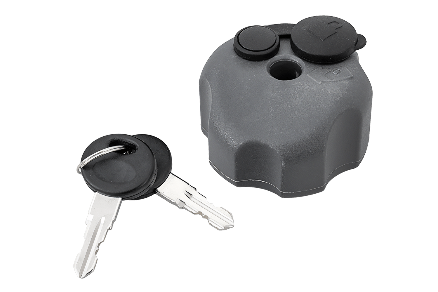Bouton de sécurité avec clés et serrure du même numéro pour le système de montage conique sur les plateformes de vélo Inter Pack montées sur barre de remorquage.